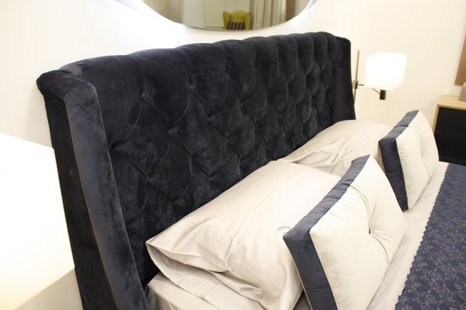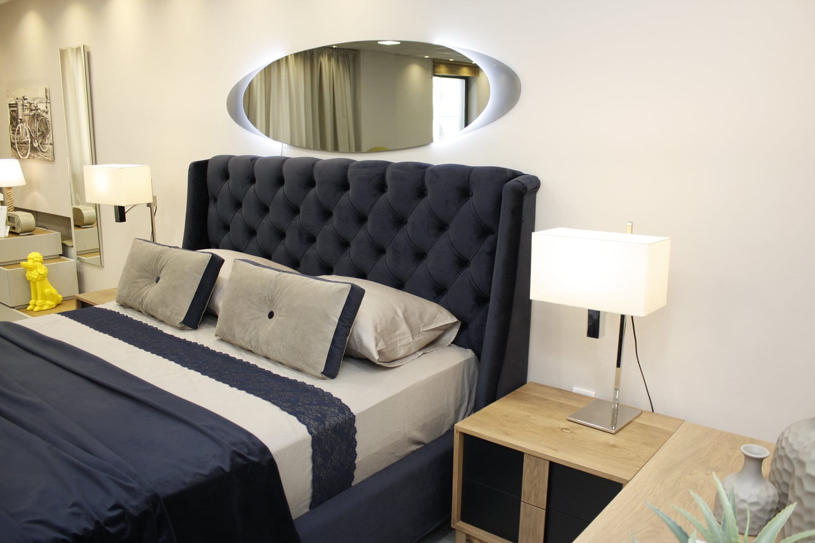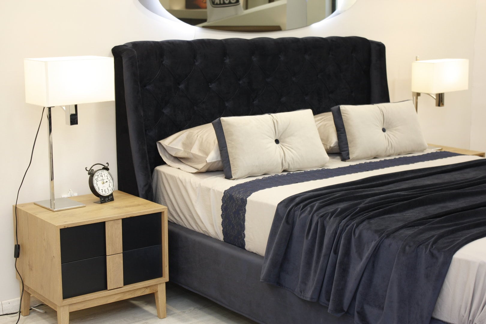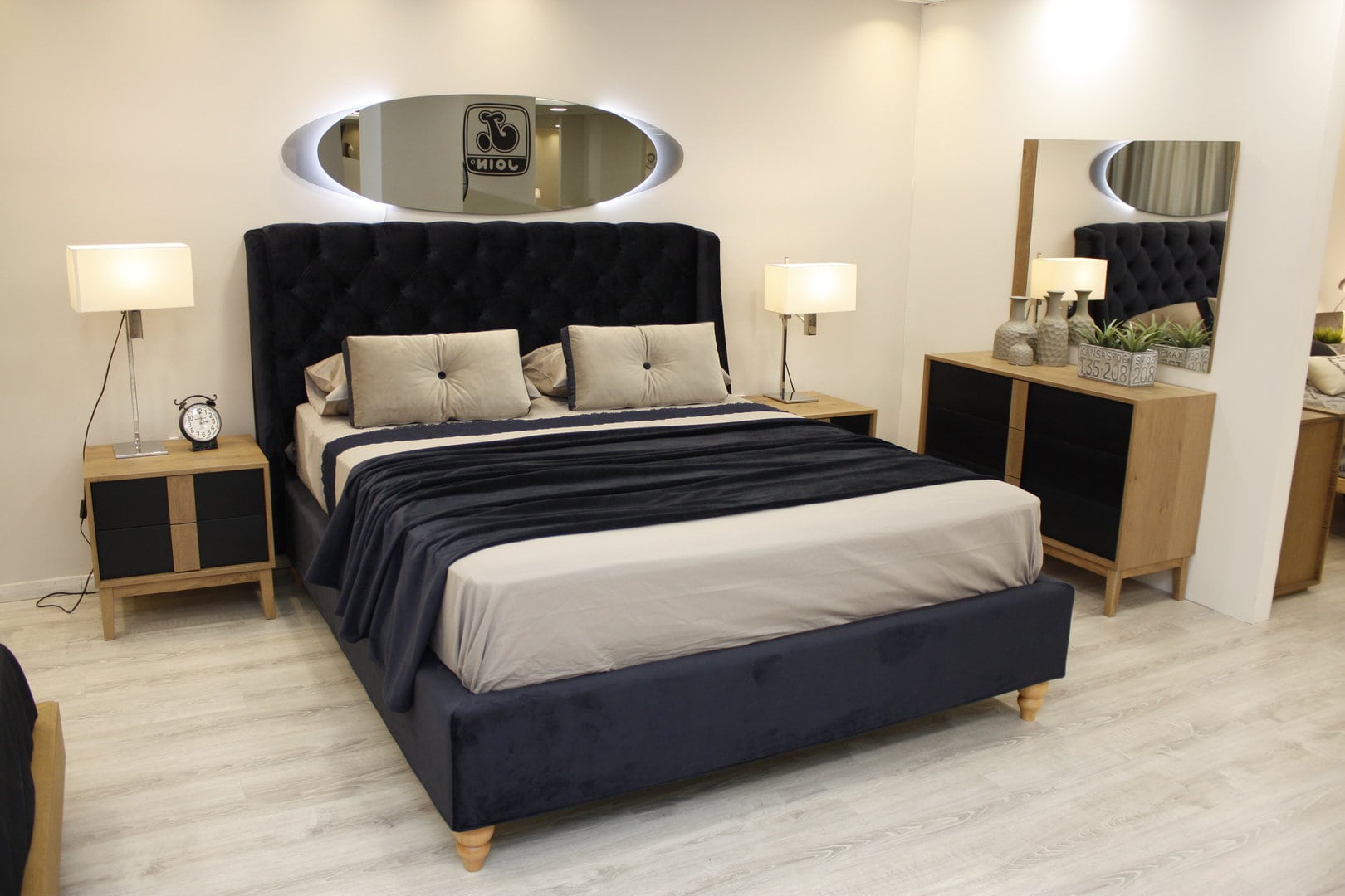Μία κρεβατοκάμαρα κατασκευασμένη από δρυς και σε συνδυασμό με  λεπτομέρειες από λάκα μας εντυπωσιάζει τόσο αισθητικά όσο και λειτουργικά με ντυμένο με ύφασμα της επιλογής σας σε όλο το κρεβάτι.