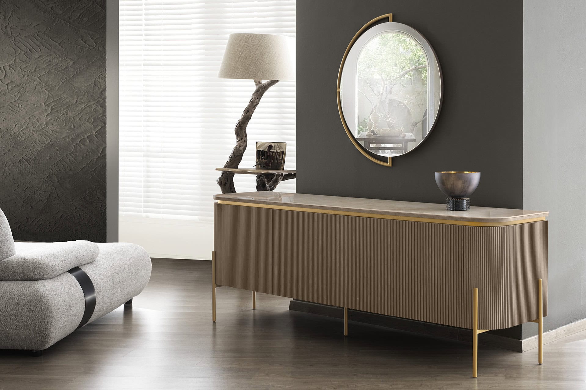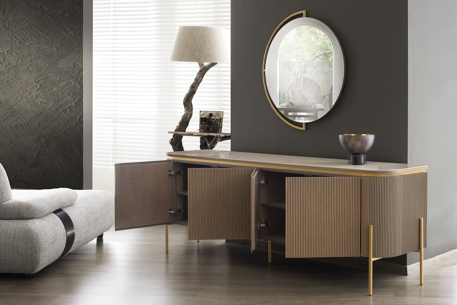 Μπουφές Estilo. Ελληνικής Κατασκευής. Ξύλο δρυς με μασίφ πηχάκια και κεραμική επιφάνεια (κατόπιν επιλογής) Διάσταση: 221cm x 48cm x 78cm Ο μπουφές Estilo αποτελεί μία εξαιρετική επιλογή, που ταιριάζει απόλυτα σε κάθε καλόγουστα διακοσμημένο χώρο, και δικαιώνει εσάς που θέλετε ένα κομψό έπιπλο αποθηκευτικού χώρου που συνδυάζει την εργονομία με την υψηλή αισθητική. Δυνατότητα αλλαγών.