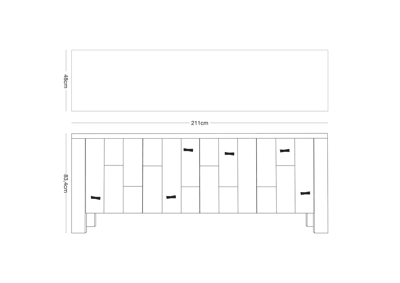 Μπουφές Puzzle Ελληνικής κατασκευής Υλικά κατασκευής: Ξύλο μασίφ δρυς Αμερικής. Με τέσσερις πόρτες Διάσταση: 211cm x 48cm x 83cm Δυνατότητα αλλαγών.