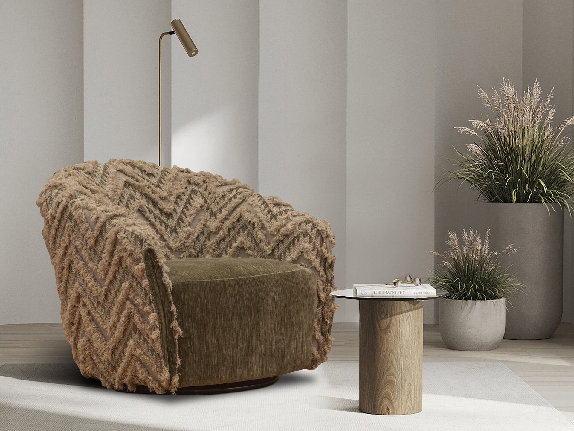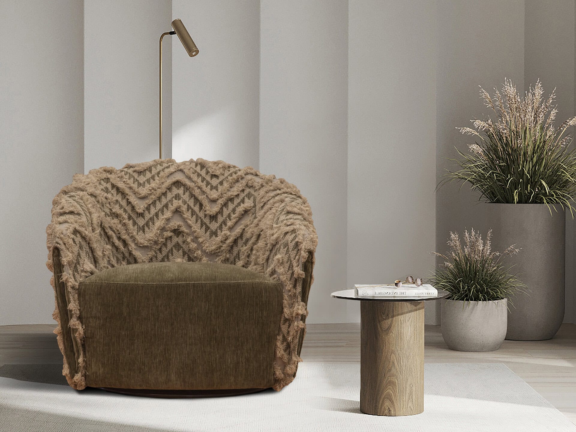 Πολυθρόνα σε ύφασμα και χρώμα της επιλογής σας. Με χαμηλά πόδια και άνετο κάθισμα.