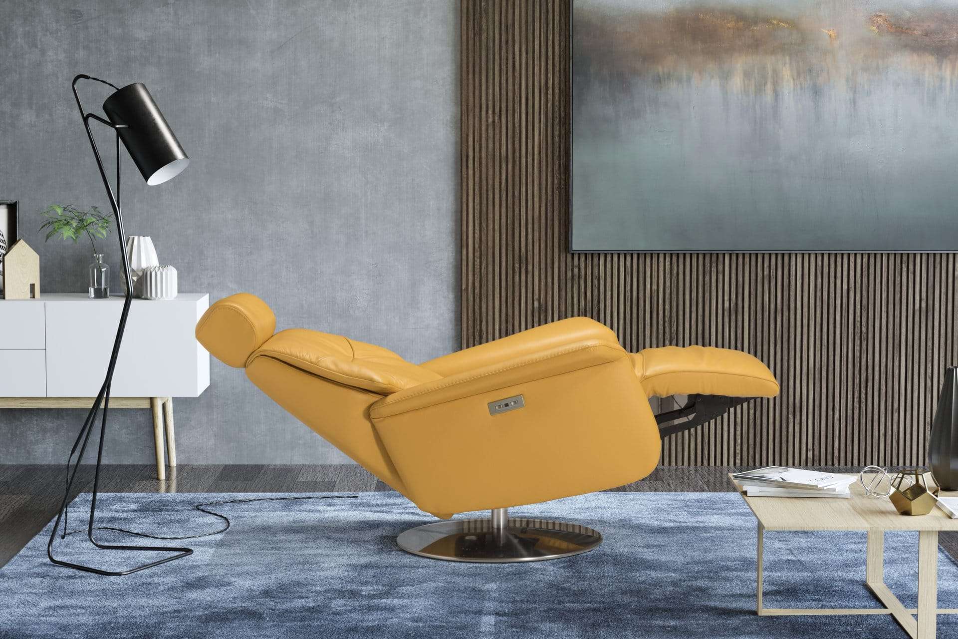 Πολυθρόνα relax Futura δέρμα Ιταλίας Made in Italy Διαστάσεις : 92cm x 88cm x 112cm h Κατηγορία δέρματος: Cat.400 πάχος 1,5 – 1,6mm Τα μαξιλάρια καθίσματος κατασκευάζονται από αφρό πολυουρεθάνης μέτριας προς μαλακής σκληρότητας ενώ τα μαξιλάρια πλάτης είναι γεμισμένα με πολυεστερικές ίνες (conforel). Ο σκελετός του καναπέ είναι κατασκευασμένος από μασίφ ξυλεία (οξιά & λευκή ξυλεία) ενώ τη στήριξη των μαξιλαριών αναλαμβάνουν οι πυκνά τοποθετημένοι & πλεγμένοι ελαστικοί ιμάντες (φάσες). Διαθέτει περιστροφική μεταλλική βάση και δυο ξεχωριστά ηλεκτρικά μοτέρ που ρυθμίζεις τα πόδια και την πλάτη ανεξάρτητα. Διατίθεται με δέρμα ή ύφασμα της επιλογής σας. Για δυνατότητες αλλαγών επικοινωνήστε μαζί μας.