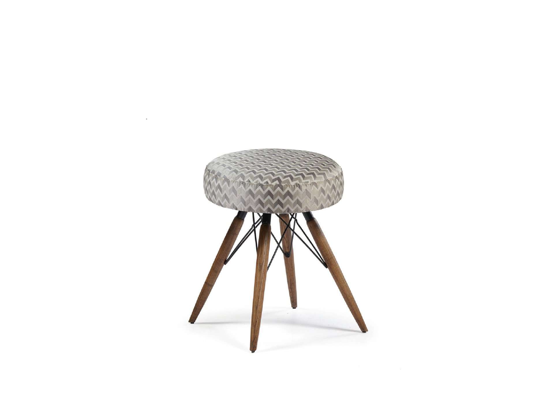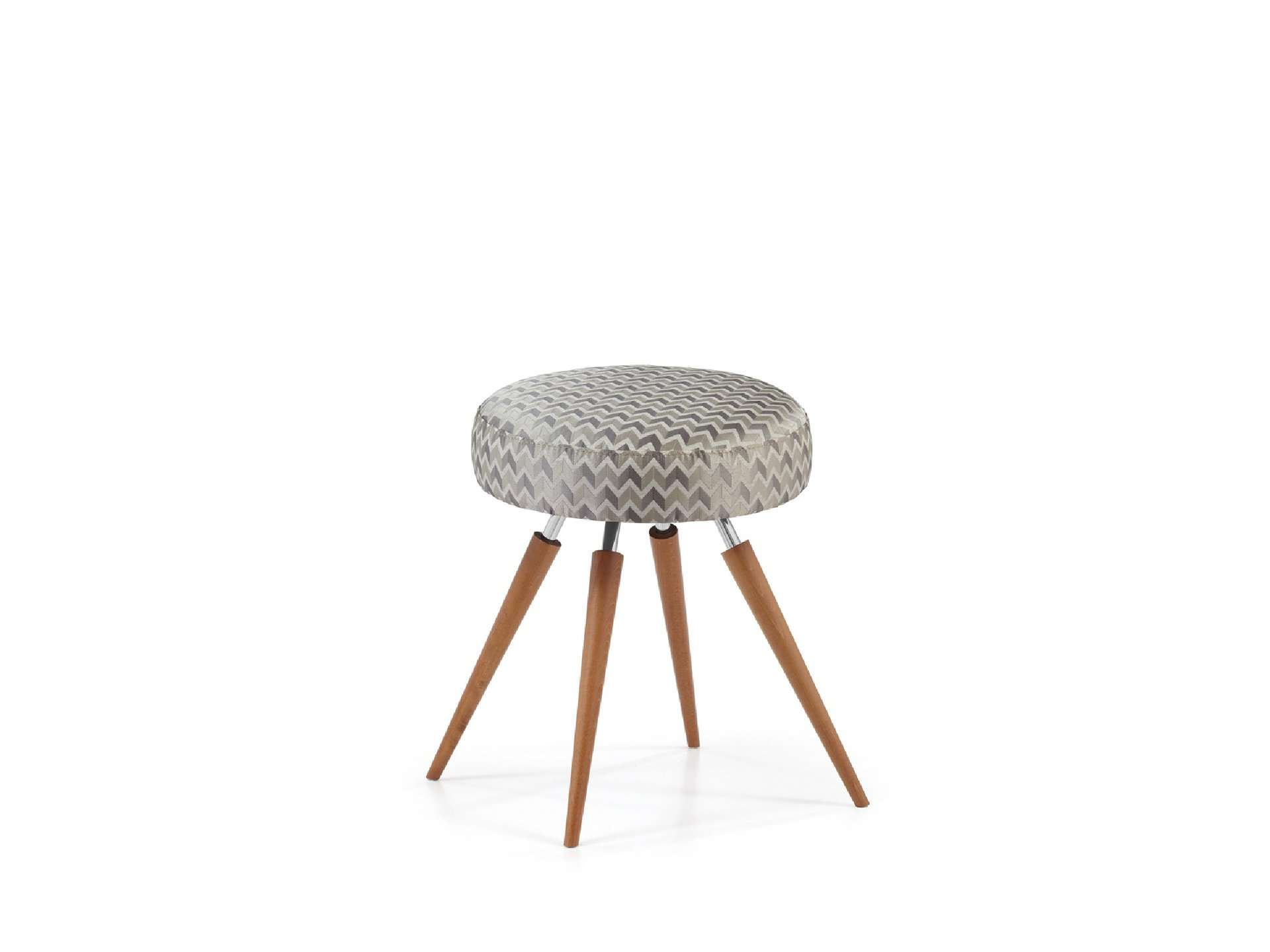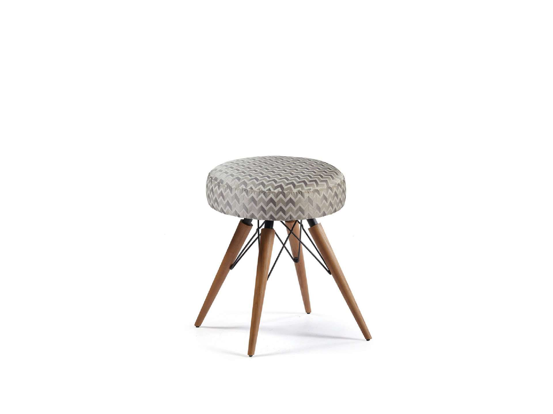 Μοντέρνου σχεδιασμού σκαμπό, ντυμένo με ύφασμα και ξύλινα πόδια.
