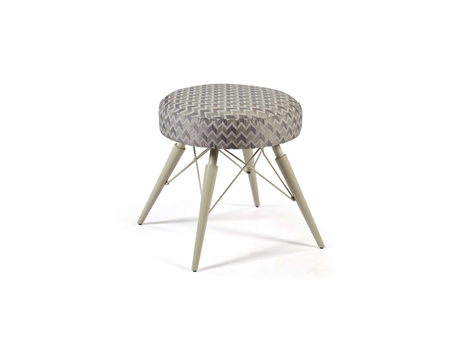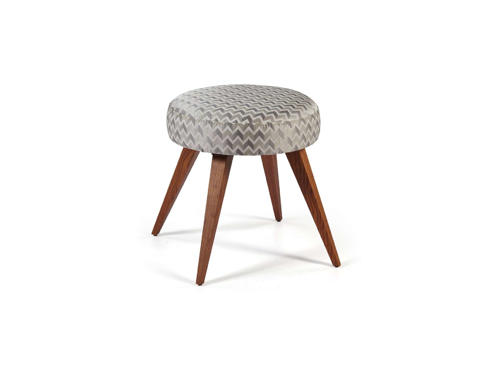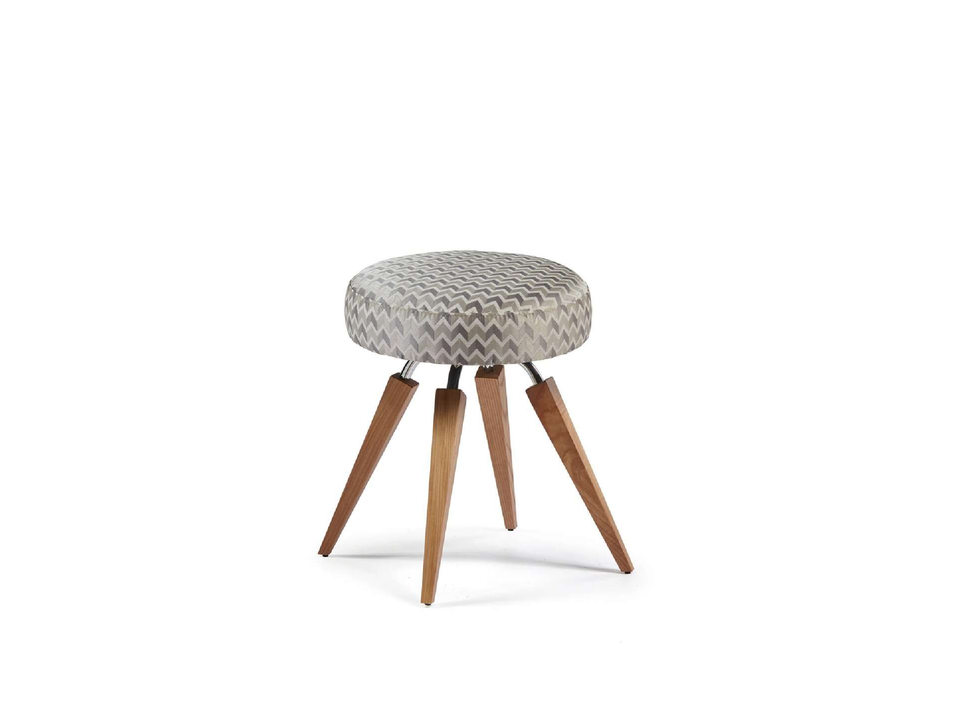 Μοντέρνου σχεδιασμού σκαμπό, ντυμένo με ύφασμα και ξύλινα πόδια.