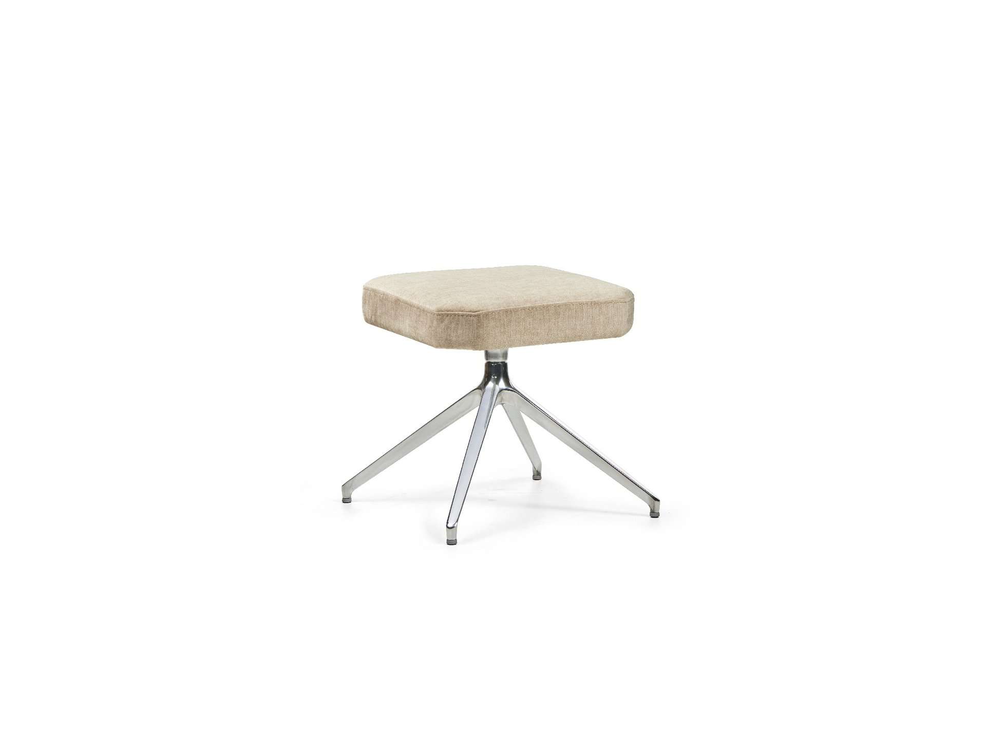 Μοντέρνου σχεδιασμού σκαμπό, ντυμένo με ύφασμα και μεταλλική περιστρεφόμενη βάση.