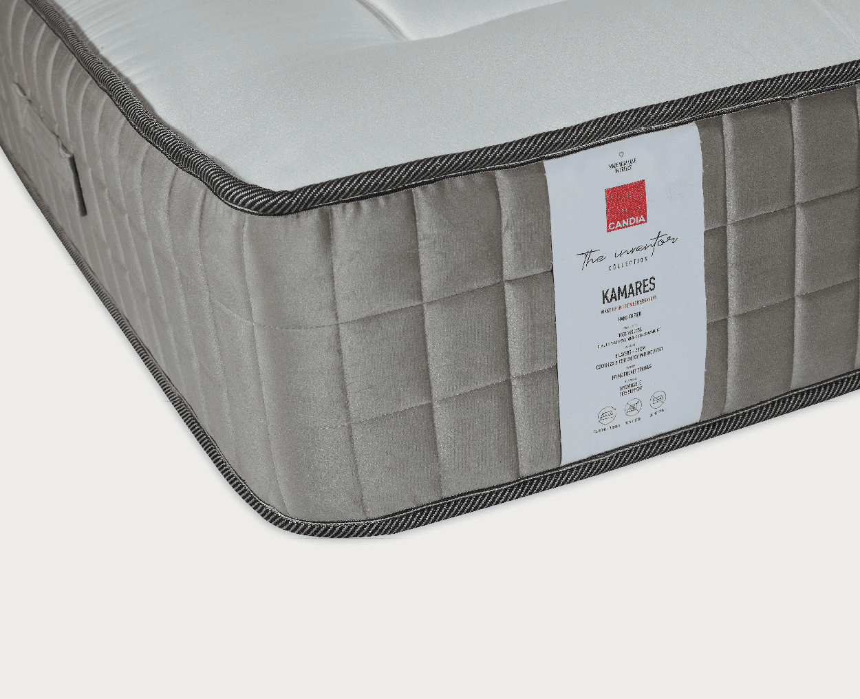 The Inventor Collection - Η εκδοχή του στρώματος που συνδυάζει τα σύγχρονα με παραδοσιακά υλικά. Ισχυρή στήριξη από κορυφαίας ποιότητας ελατήρια σε θήκες, γέμισμα από κοκοφοίνικα ή και αλογότριχα, πριν το σώμα σας έρθει σε επαφή με το εξαιρετικής ποιότητας ύφασμα από βισκόζη με ελαιόλαδο για φυσική αντιβακτηριακή προστασία, μια καινοτομία της CANDIA. O αέρας κυκλοφορεί ελεύθερα μέσα από τις ίνες και το στρώμα προσαρμόζεται στο σώμα σας πιο εύκολα. Λίγα λόγια για το στρώμα: Στρώμα Kamares - 10 Χρόνια Εγγύηση - Ύψος : 28cm Prime Support στήριξη, στρώση CocoFlex που έχει σαν πρώτη ύλη τον κοκοφοίνικα και 3 επιπλέον στρώσεις μαλακών υλικών, περικλείονται στο μοναδικό ύφασμα από 100% βισκόζη (με πιστοποίηση OEKO TEX STANDARD 100), επεξεργασμένο με ελαιόλαδο. Οι Kamares είναι το πρώτο στρώμα της Inventor Collection με Olive Oil Treatment. Μοναδική καινοτομία, εμπνευσμένη από τη φύση, κατασκευασμένη από την Candia. Είμαστε η μοναδική εταιρεία παγκοσμίως που επεξεργάζεται τα υφάσματά της με λάδι ελιάς, το πιο πολύτιμο δώρο που μας έχει προσφέρει απλόχερα η γη της Μεσογείου. YΦΑΣΜΑ 100% viscose fabric Olive oil treatment OEKO TEX STANDARD 100 ΑΝΕΣΗ 6 επίπεδα υλικών Cocoflex Cotton top pad ΣΤΗΡΙΞΗ Prime pocket springs ΠΡΟΣΘΕΤΑ ΧΑΡΑΚΤΗΡΙΣΤΙΚΑ Περιμετρικό αφρώδες υλικό Αεριζόμενα υφάσματα Οι παραπάνω τιμές ισχύουν για στρώματα μήκους έως 200cm.