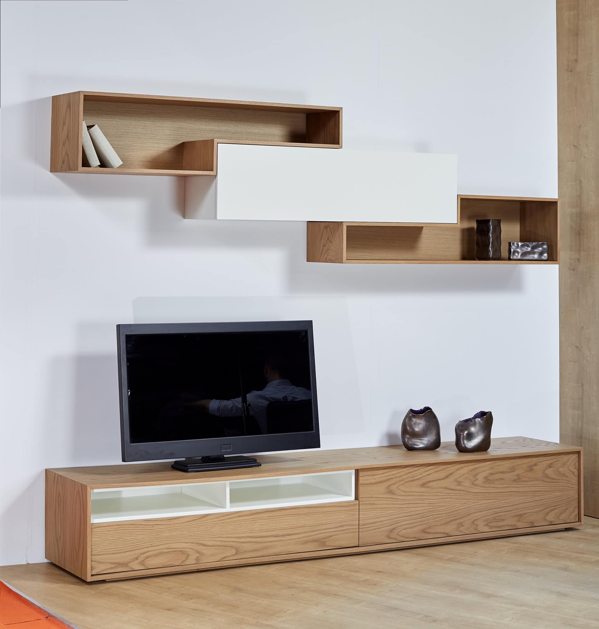 Σύνθεση Casa. Ελληνικής Κατασκευής. Ξύλο: Δρυς rustic και στοιχεία σε λάκα. Έξυπνο design με πολλούς αποθηκευτικούς χώρους. Ανοιχτά ράφια για να στολίσετε το σαλόνι σας. Διάσταση σύνθεσης: 270cm x 45cm Δυνατότητα αλλαγών.