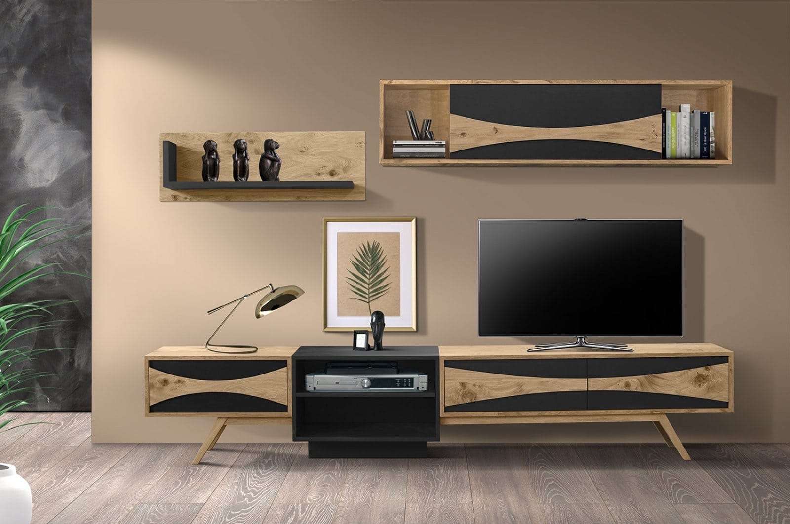 Σύνθεση Σ18. Ελληνικής Κατασκευής. Ξύλο δρυς rustic με λάκα. Διάσταση σύνθεσης: 240cm Δυνατότητα αλλαγών.