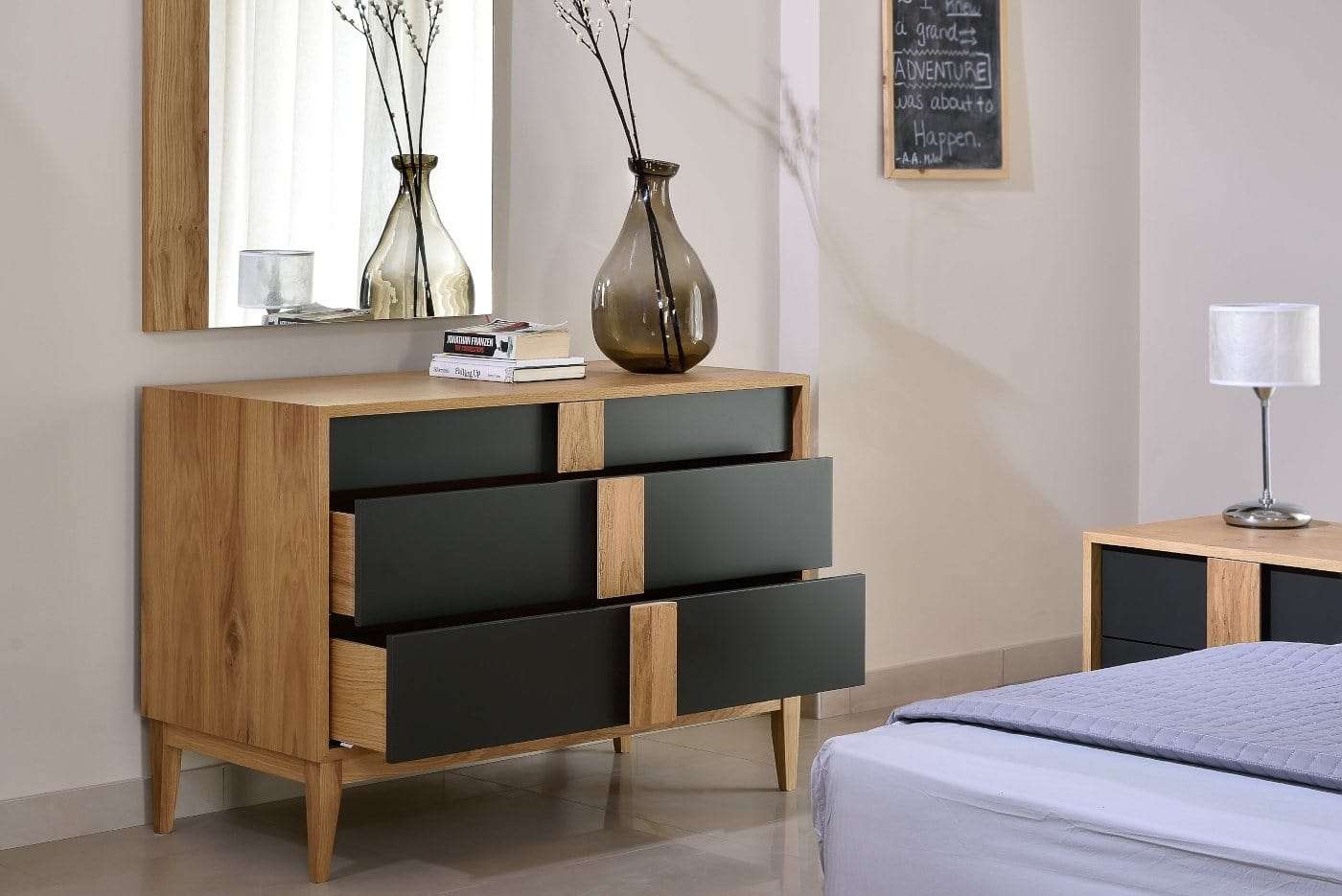 Τουαλέτα Korey. Ελληνικής Κατασκευής. Υλικά κατασκευής: Ξύλο δρυς σε συνδυασμό με λάκα. Διάσταση : 110cm x 53cm x 73cm h Δυνατότητα αλλαγών.