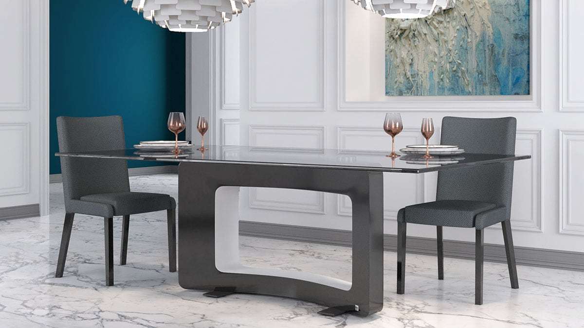 Τραπεζαρία Capri Glass Υλικά κατασκευής: Τζαμί σε συνδυασμό με λάκα. Διάσταση: 205cm x 100cm x 75cm Ημικυκλική βάση ιδιαίτερου σχεδιασμού και λάκα δυο χρωμάτων στη βάση σε ένα μοναδικό σύνολο που αποπνέει φινέτσα και διακριτική πολυτέλεια. Συνδυάζεται με τον μπουφέ Capri και με την καρέκλα Chic. Μπορείτε να διαλέξετε και άλλο τύπο καρέκλας σε μοντέρνο η πιο κλασσικό στυλ από τη συλλογή μας σε καρέκλες. Δυνατότητα αλλαγών.