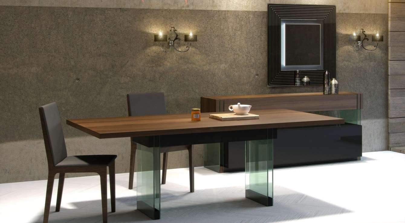Τραπεζαρία Decor Υλικά κατασκευής: Ξύλο δρυς και γυάλινη βάση. Διάσταση: 180cm x 100cm ή 200cm x 100cm Ξύλο και γυαλί σε απόλυτη ισορροπία σε ένα elegant σχέδιο που κρύβει τον όγκο του αλλά επιβάλλεται στο χώρο. Συνδυάζεται με τον μπουφέ Decor, τη σύνθεση τοίχου Decor, το τραπέζι Decor και την κονσόλα Decor (όλα σε διαστάσεις, ξύλο, συνδυασμούς υλικών και χρωμάτων προσαρμοσμένα στις ανάγκες του χώρου σας). Έξτρα: προέκταση 40cm στα 170€ Δυνατότητα αλλαγών.