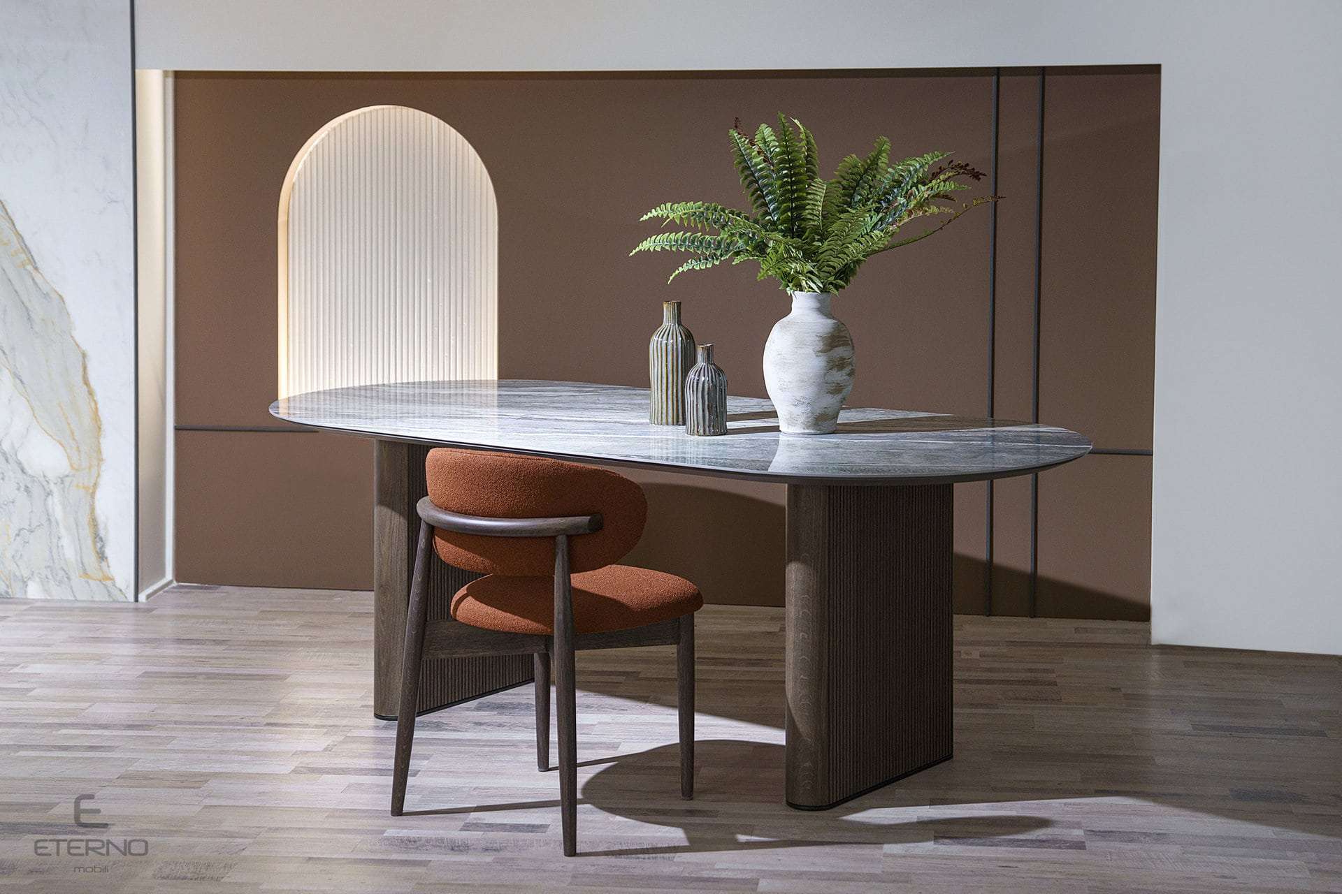 Με εντυπωσιακή κεραμική επιφάνεια η τραπεζαρία Icon ceramic αποτελεί μία ολοκληρωμένη πρόταση που θα δημιουργήσει ένα ξεχωριστό αισθητικό αποτέλεσμά στο σπίτι σας.