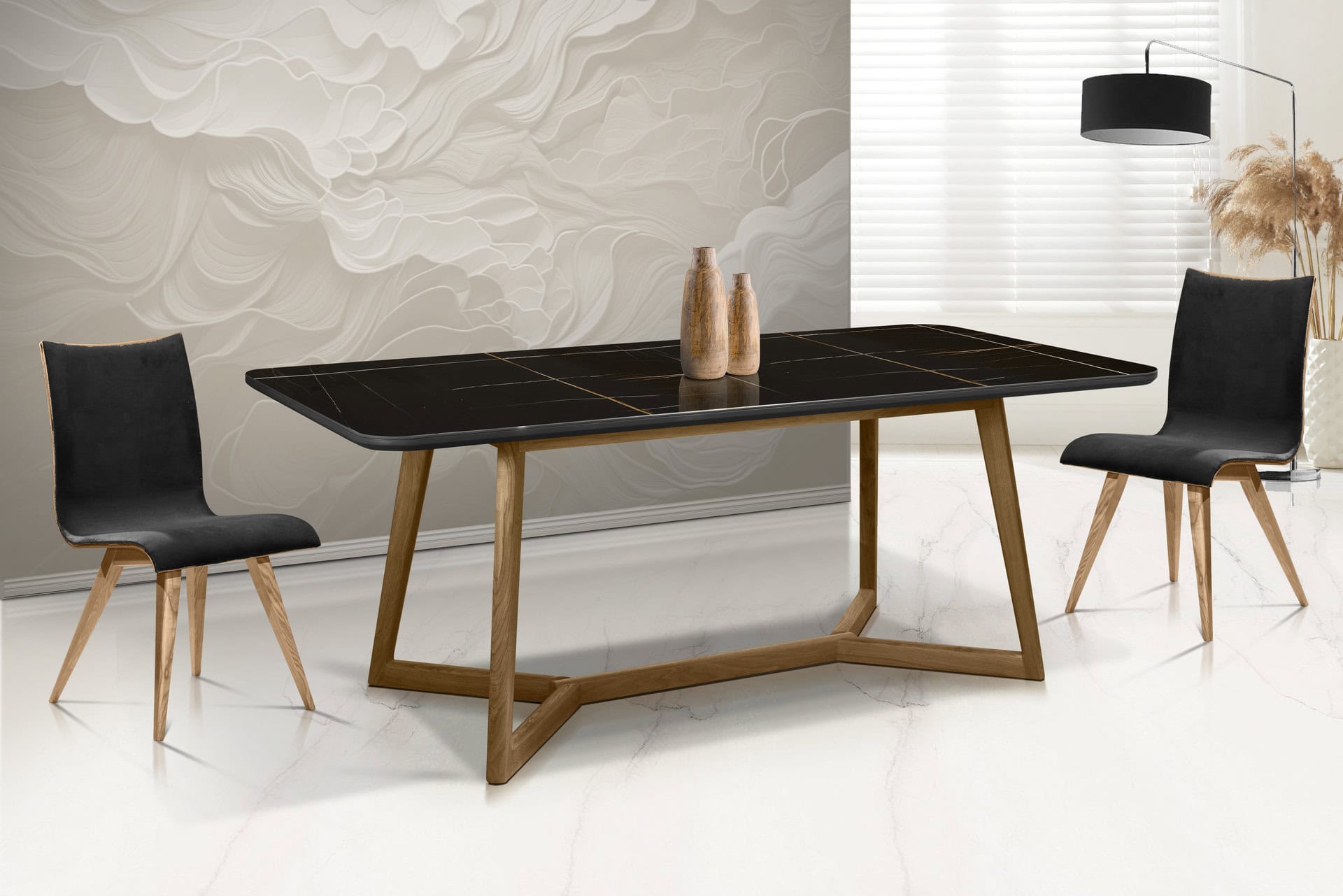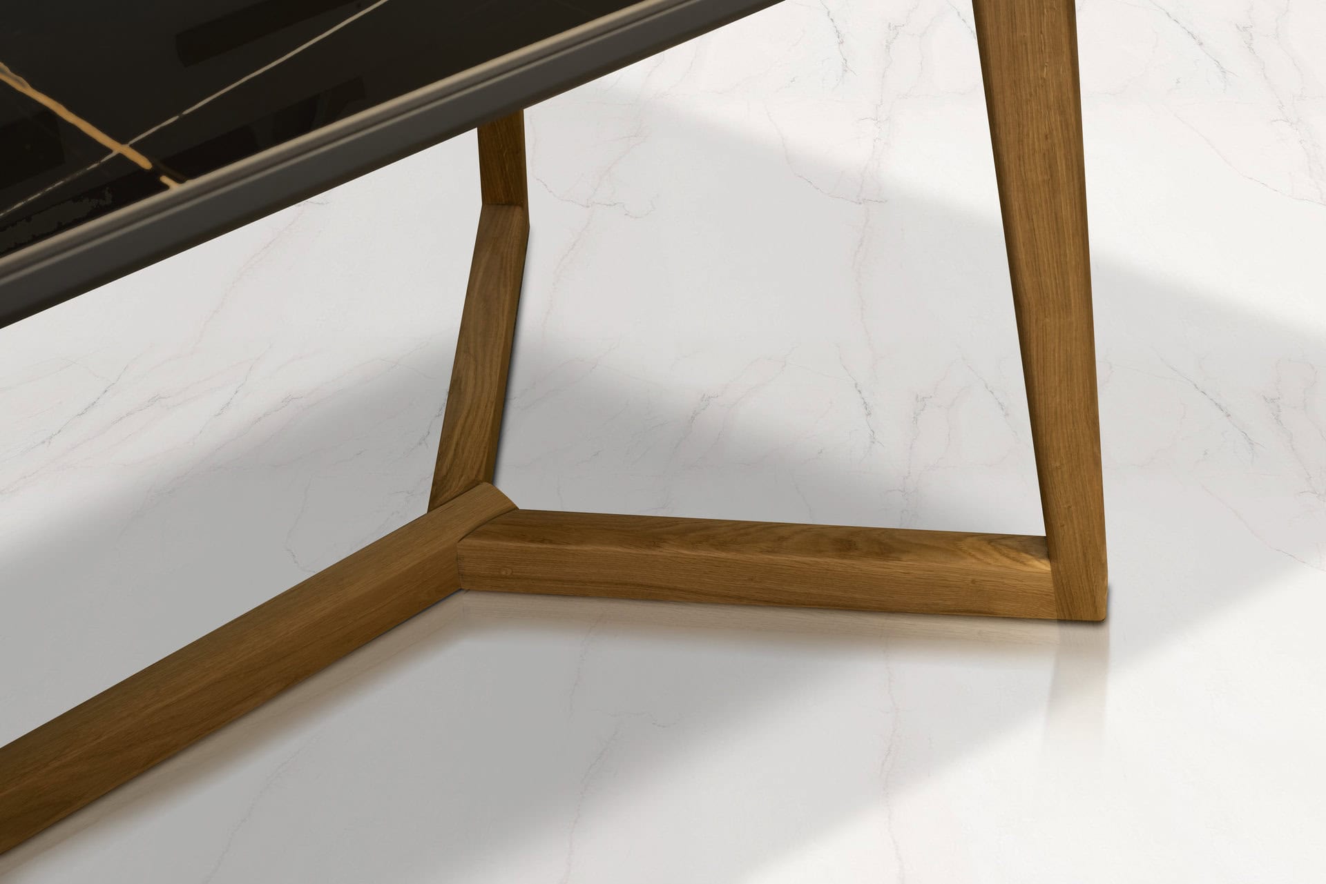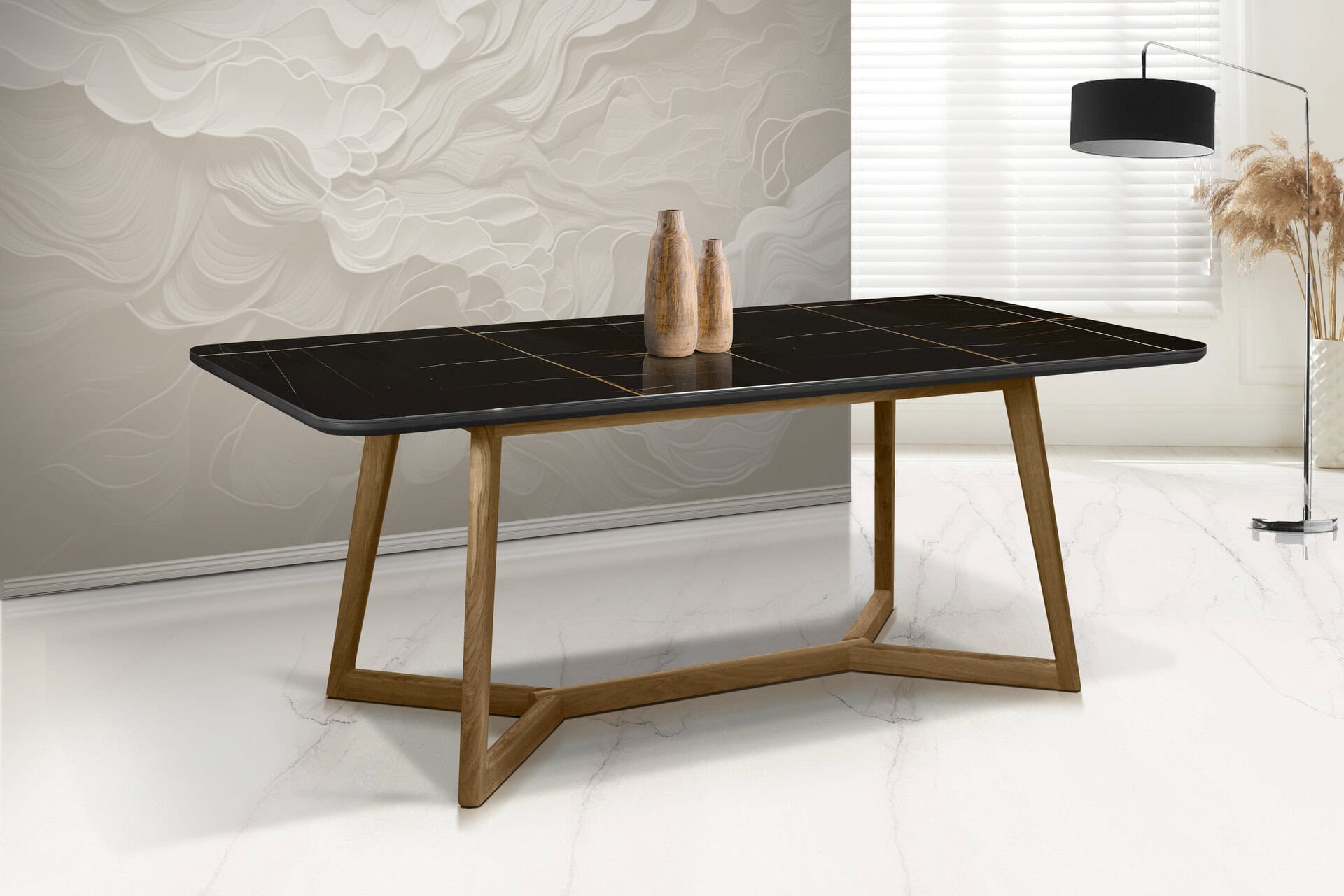Μοντέρνα τραπεζαρία με ιδιαίτερη ξύλινη βάση απο μασίφ ξύλο σε χρώματα τις επιλογής σας. Η τραπεζαρία Τ17 έχει κεραμική επιφάνεια με επιλογή σε χρώμα και σχέδιο. Την κατασκευάζουμε σε διαστάσεις και χρώματα προσαρμοσμένα στο χώρο σας.