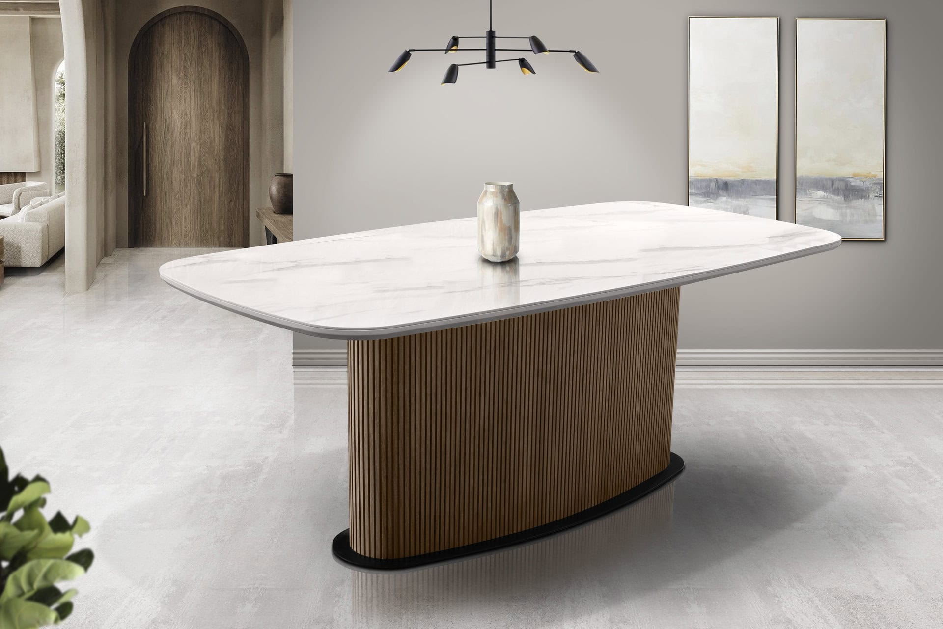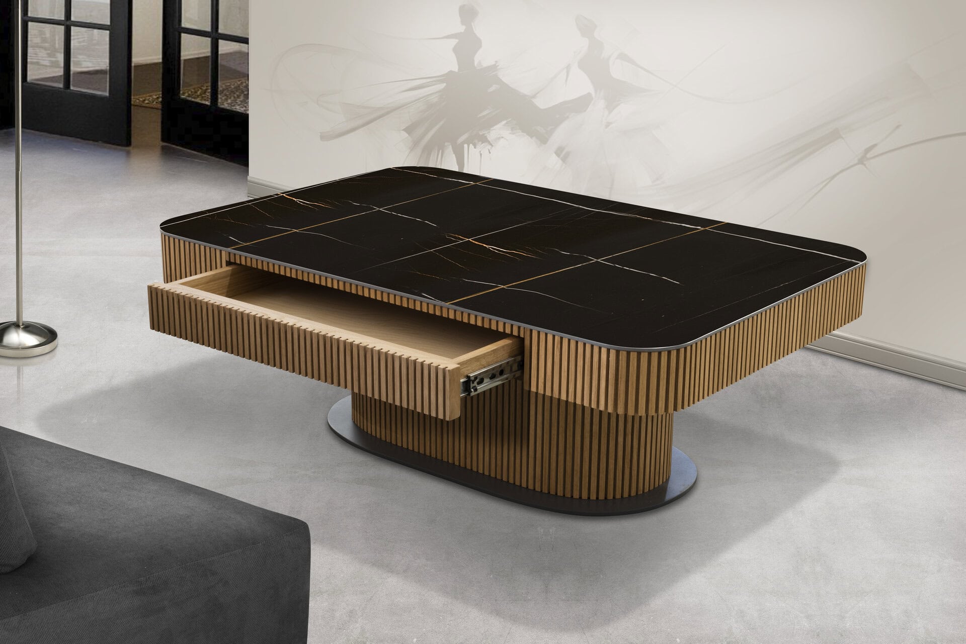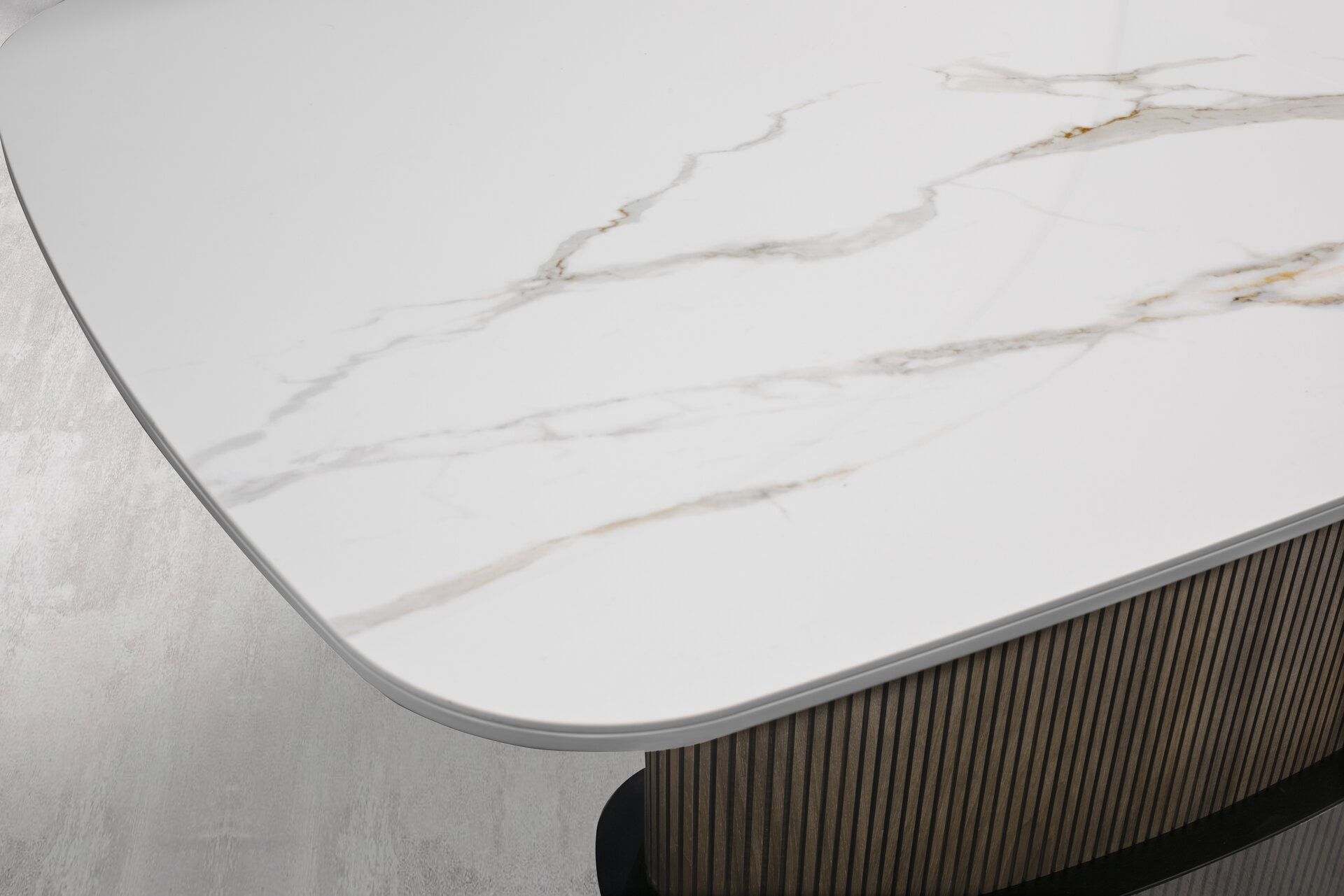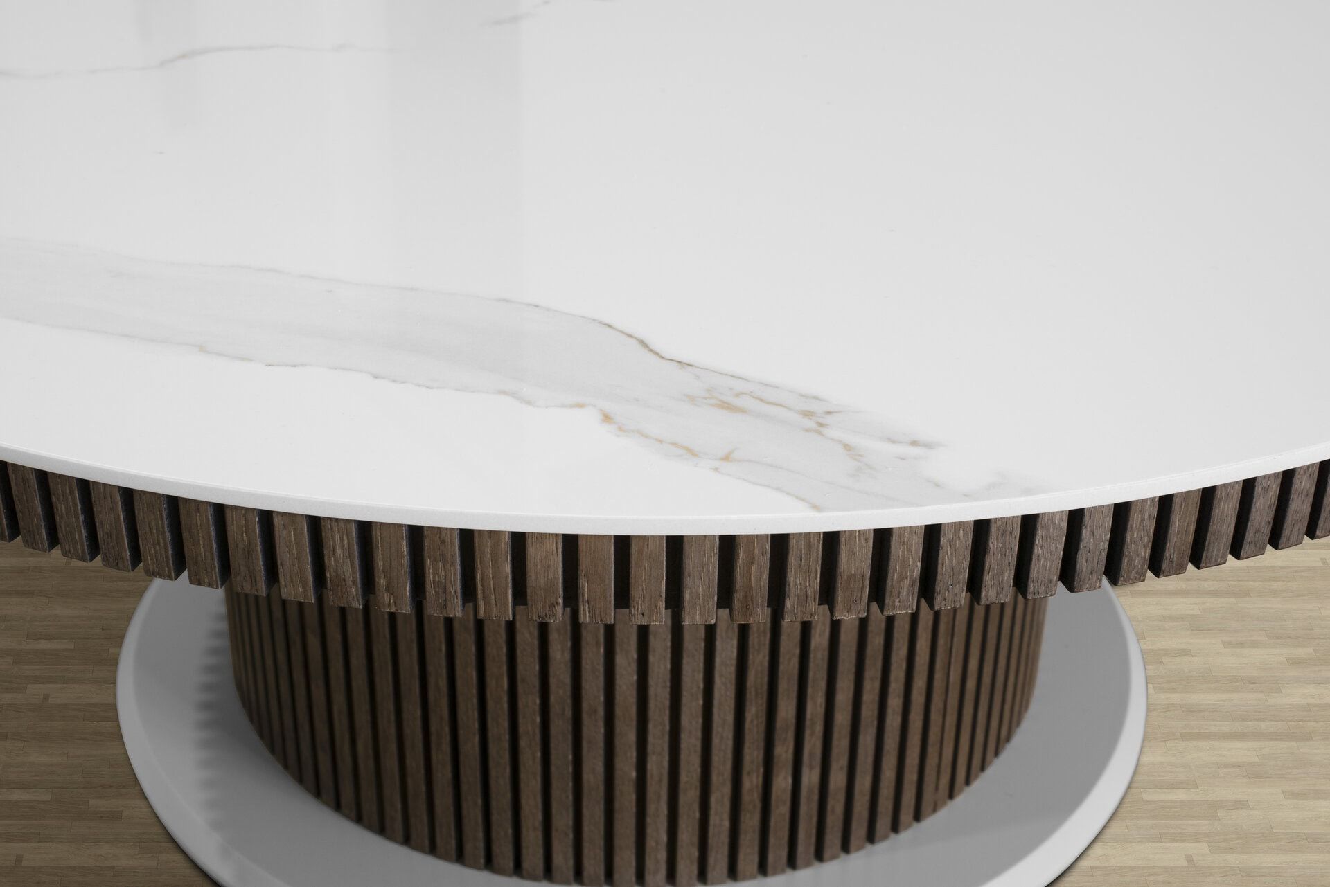 Μοντέρνα τραπεζαρία με ιδιαίτερη ξύλινη βάση απο μασίφ ξύλο σε χρώματα τις επιλογής σας. Η τραπεζαρία Τ17 έχει κεραμική επιφάνεια με επιλογή σε χρώμα και σχέδιο. Την κατασκευάζουμε σε διαστάσεις και χρώματα προσαρμοσμένα στο χώρο σας.