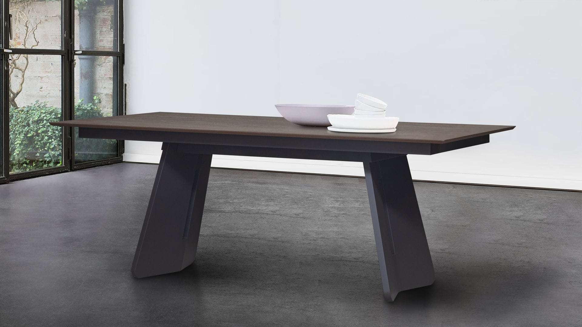 Μοντέρνα τραπεζαρία με πόδια σε ιδιαίτερο design σε λάκα στα χρώματα τις επιλογής σας. Η τραπεζαρία Void έχει μηχανισμό προέκτασης 45cm.  Την κατασκευάζουμε σε διαστάσεις, ξύλο και χρώματα της αρεσκείας σας.