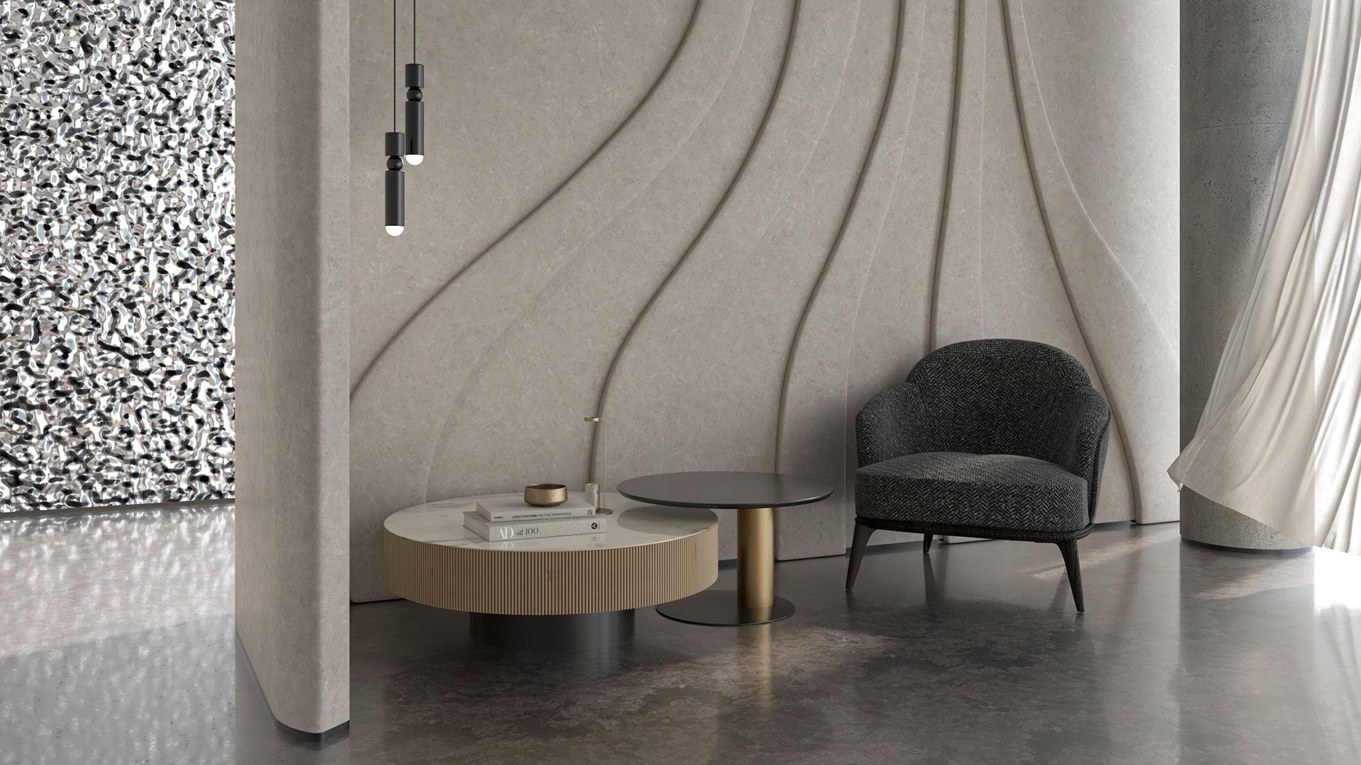 Το σετ Aphrodite αποτελείται από ένα εντυπωσιακό κεντρικό τραπεζάκι με κεραμική επιφάνεια, Panel κυκλικής επιτομής σε λάκα και βάση λάκας, ενώ το συνοδευτικό τραπεζάκι διαθέτει μεταλλική βάση και μασίφ ξύλο, προσφέροντας έναν αρμονικό συνδυασμό υλικών και υφών. Μια σύνθεση που γεμίζει το σαλόνι με μοντέρνες γραμμές και εκλεπτυσμένη φινέτσα.