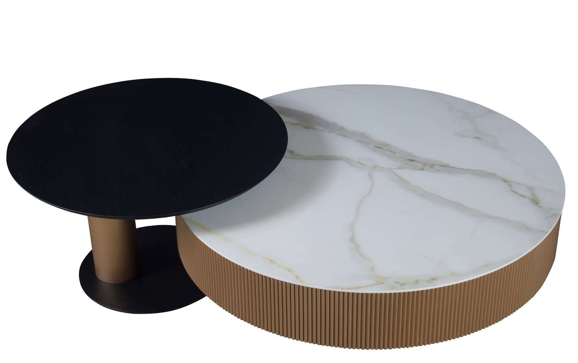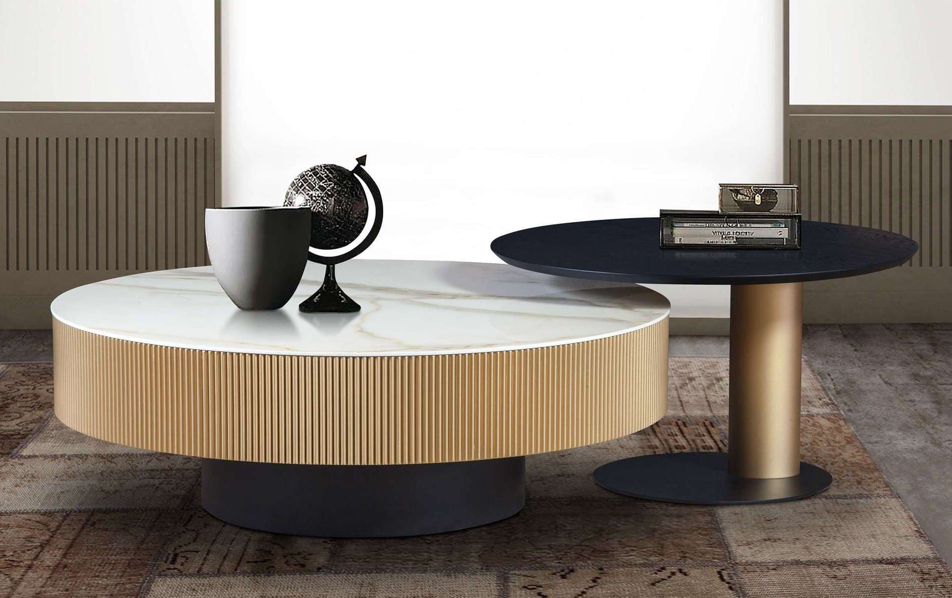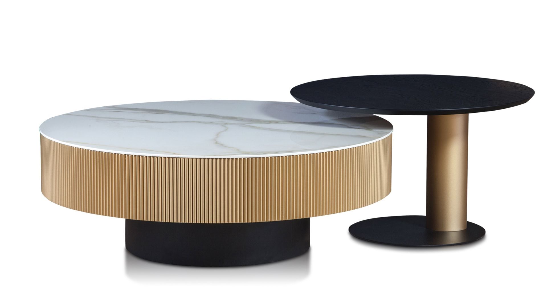 Τραπέζι σαλονιού Aphrodite. Ελληνικής Κατασκευής. *Με επιλογή για σετ: προσθέτοντας το βοηθητικό τραπεζάκι. Κεντρικό τραπέζι : Κεραμική Επιφάνεια Βοηθητικό : Ξύλο λάκα Διαστάσεις: Φ100cm το μεγάλο & Φ60cm το μικρό Εύκαμπτη επιφάνεια με λάκα Δυνατότητα αλλαγών.