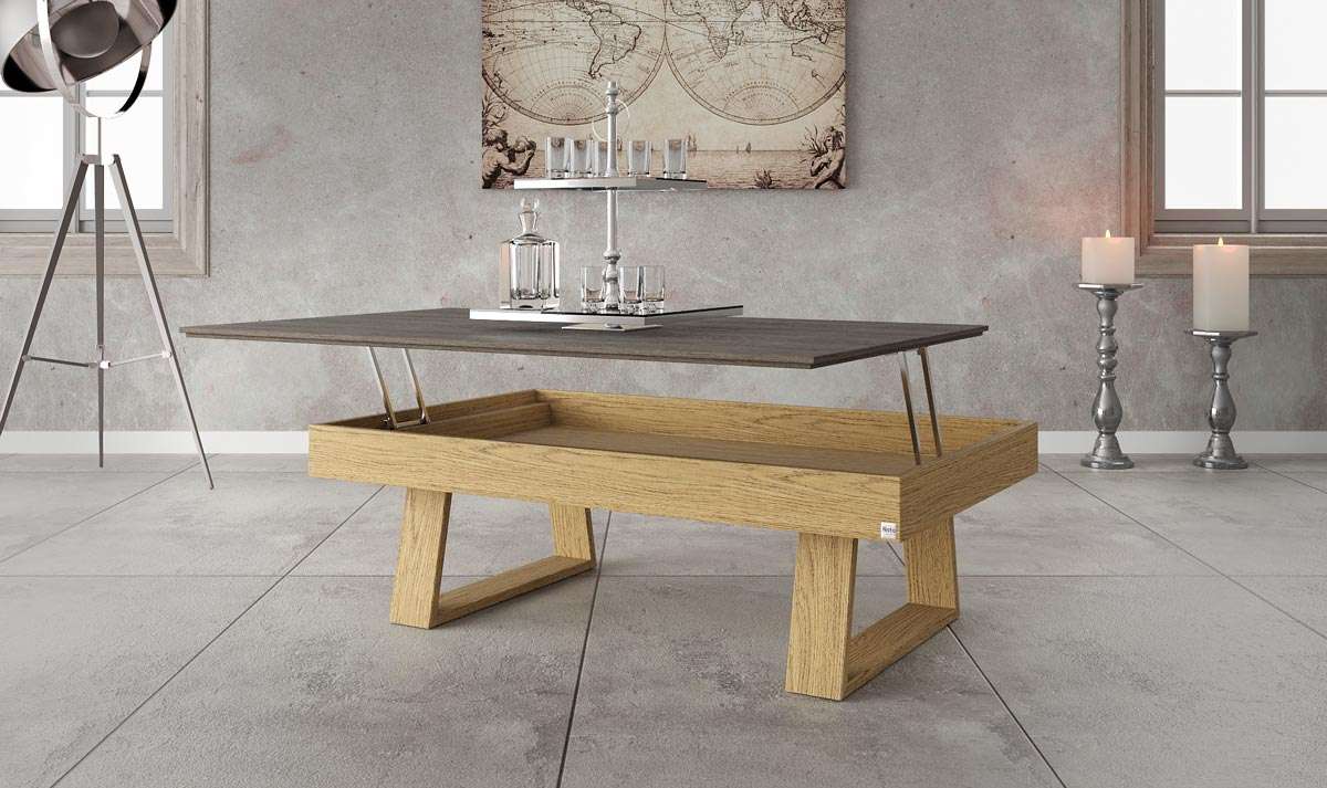 Ρουστίκ προσέγγιση και γήινη διχρωμία σε ένα μοντέρνο τραπεζάκι με ανυψούμενο σερβιτόρο. Ταιριάζει μοναδικά με κάθε στυλ καναπέ. Το τραπεζάκι Delta κατασκευάζεται σε διαστάσεις, ξύλο και χρώματα επιλογής σας.