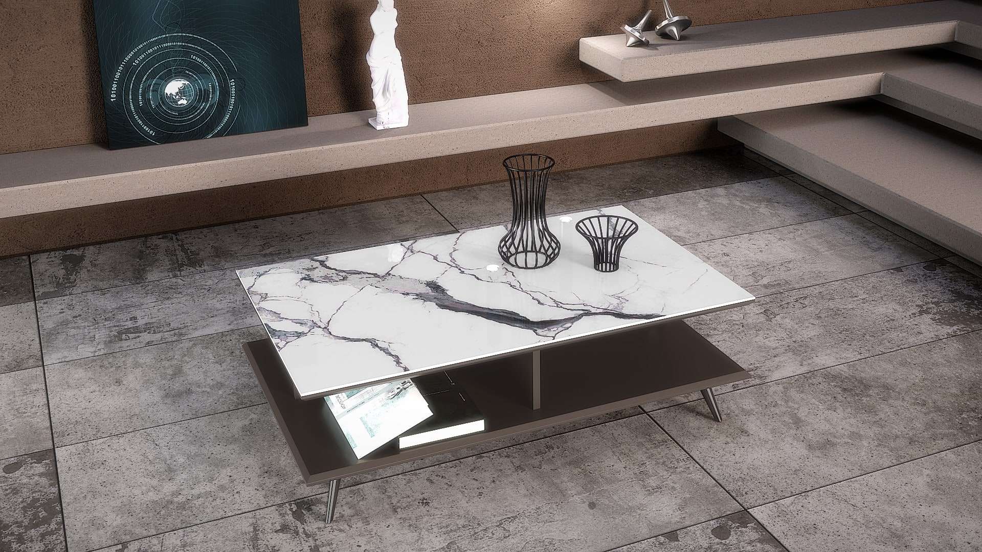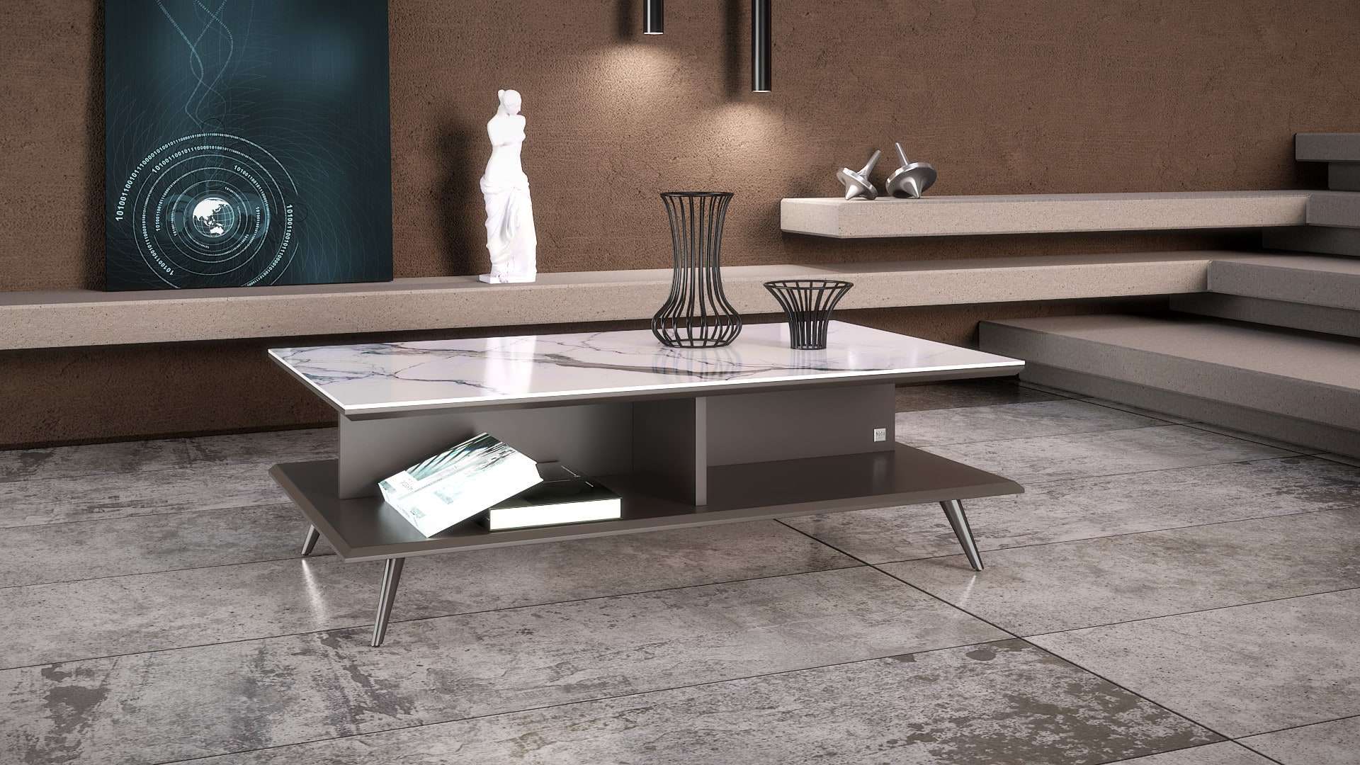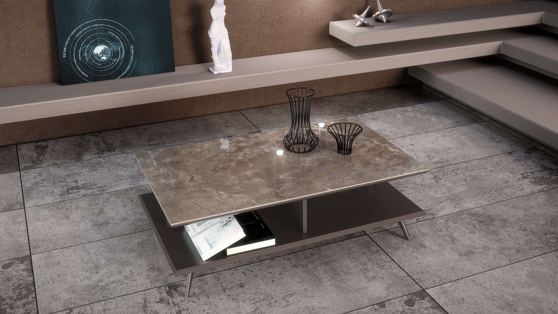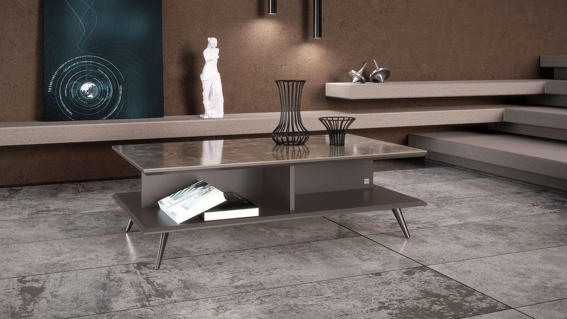 Post modern σχέδιο με κλασσικές πινελιές. Ιδιαίτερο τραπέζι σαλονιού με κεραμική επιφάνεια στο καπάκι, αποθηκευτικό χώρο με επιβλητικές συμμετρίες και μεταλλικά elegant πόδια.  Το τραπεζάκι το κατασκευάζουμε σε διαστάσεις, υλικά και συνδυασμούς χρωμάτων της επιλογής σας.