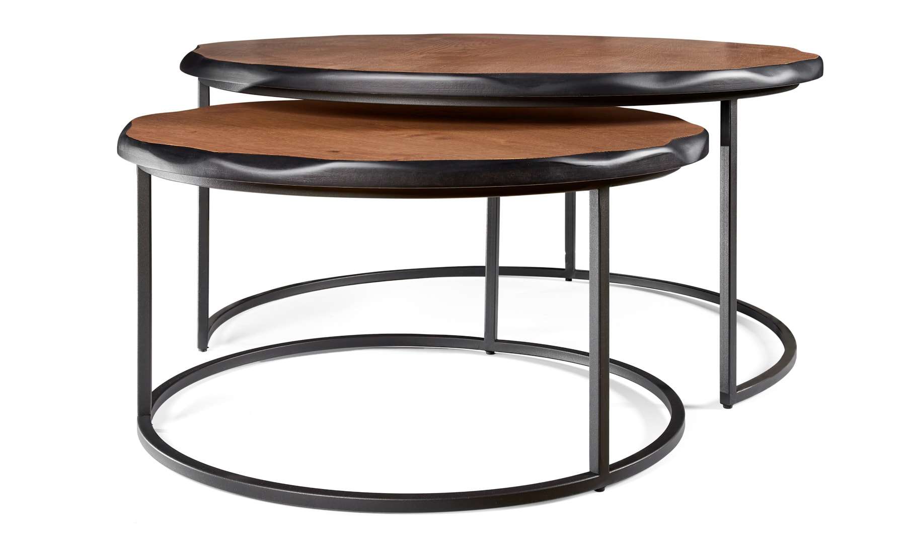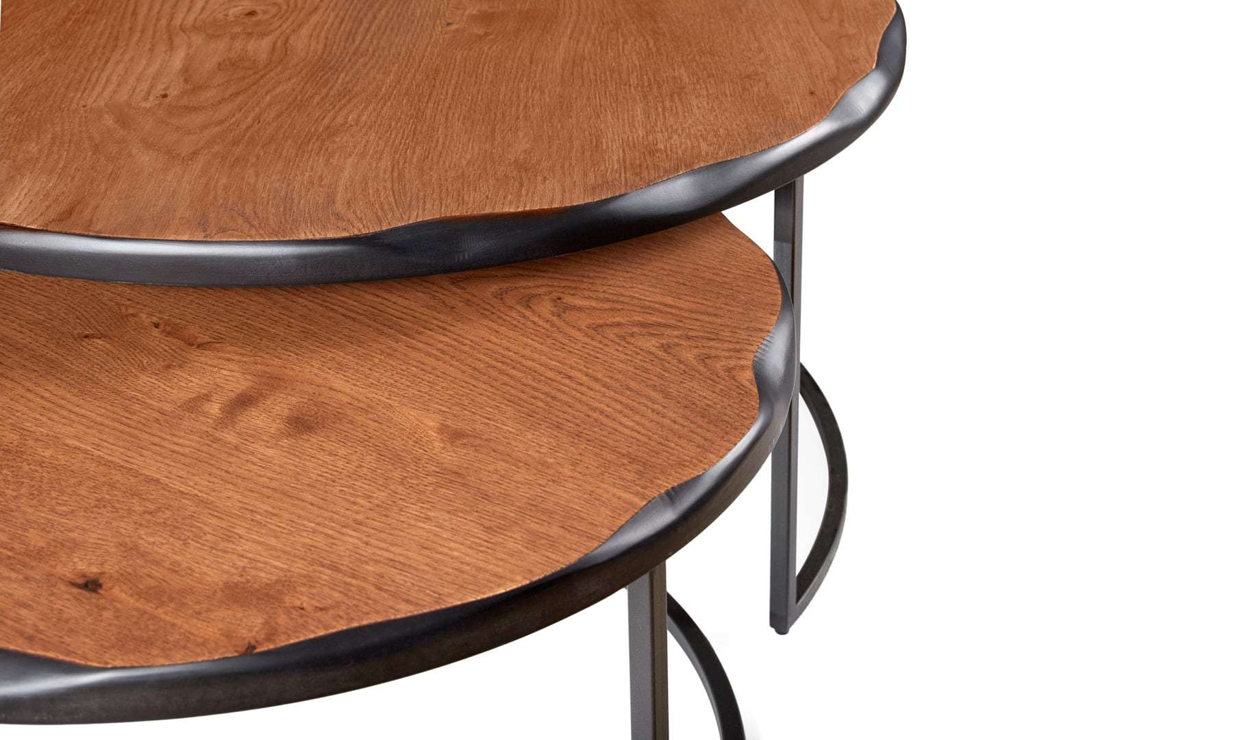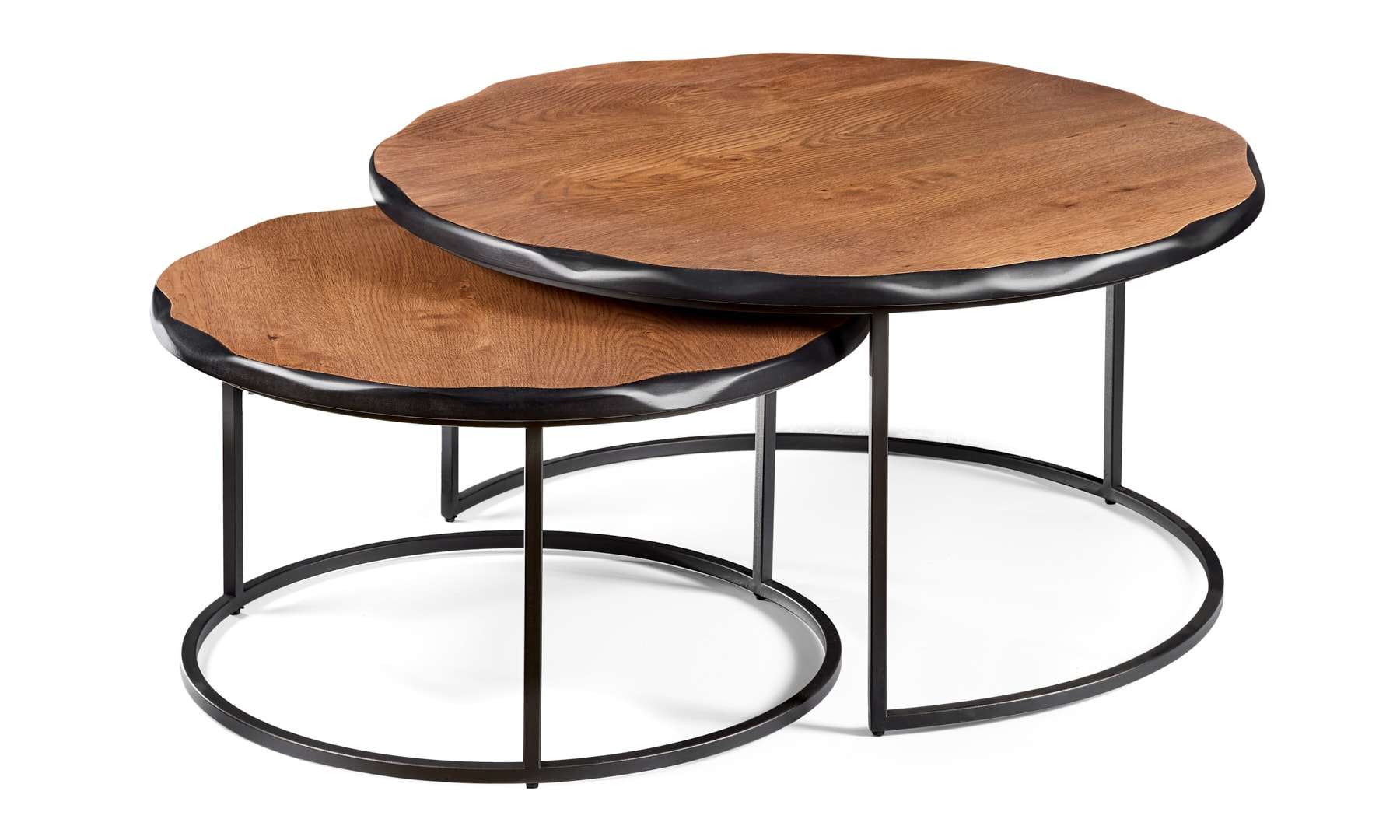 Τραπέζι σαλονιού Kronos. Ελληνικής κατασκευής. Ξύλο: Φυσικό δρυ ρουστίκ, με ρόζους. Μασίφ σιδερένια βάση με ηλεκτροστατική βαφή. Διάσταση: Φ 80cm x 43cm Υ & Φ 60cm x 36cm Υ Δυνατότητα αλλαγής διαστάσεων.
