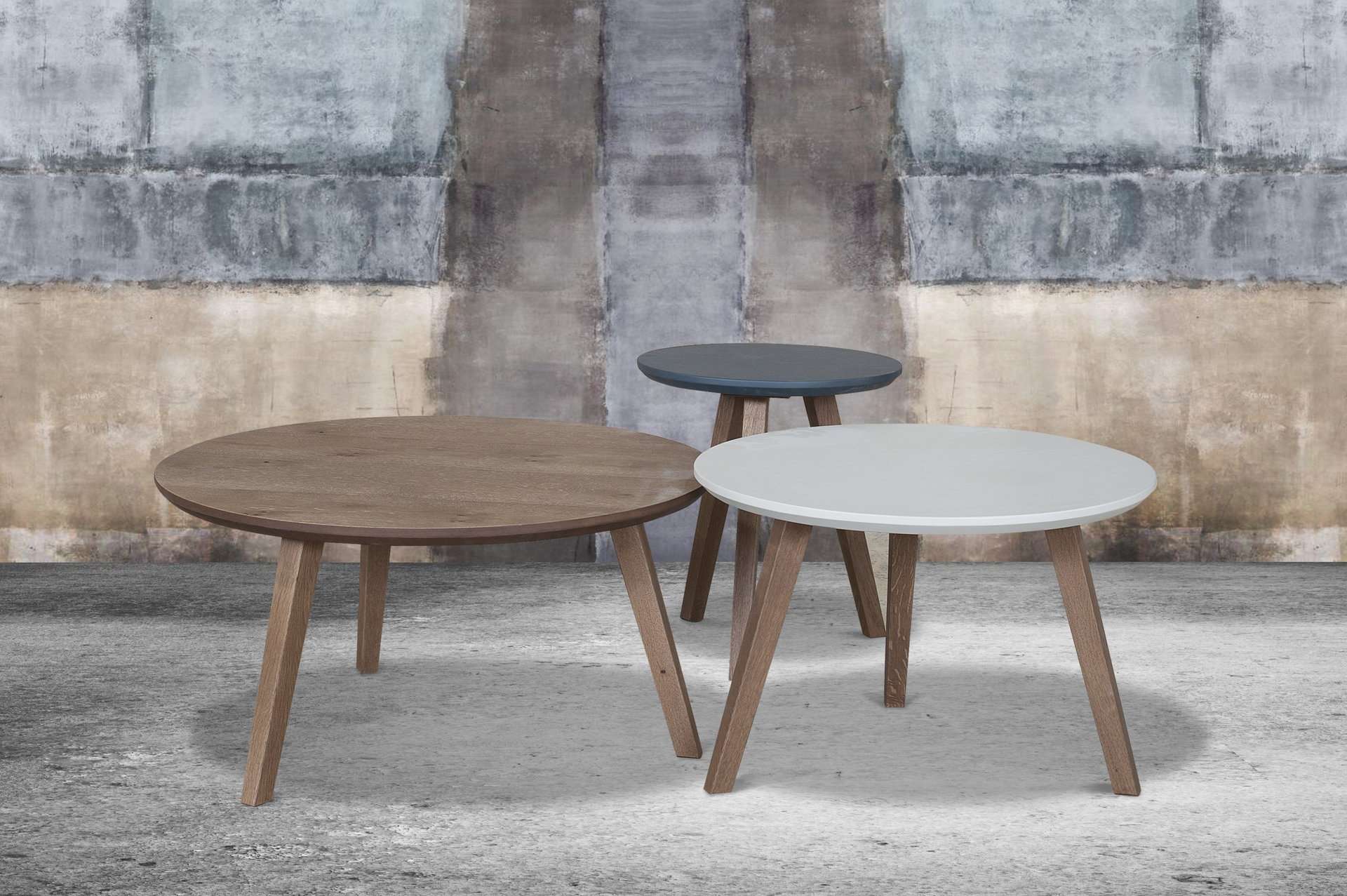 Τραπέζι σαλονιού N90 σετ. Ελληνικής Κατασκευής. Ξύλο δρυς + λάκα Διαστάσεις: Φ80cm / Φ60cm / Φ40cm Δυνατότητα αλλαγών.
