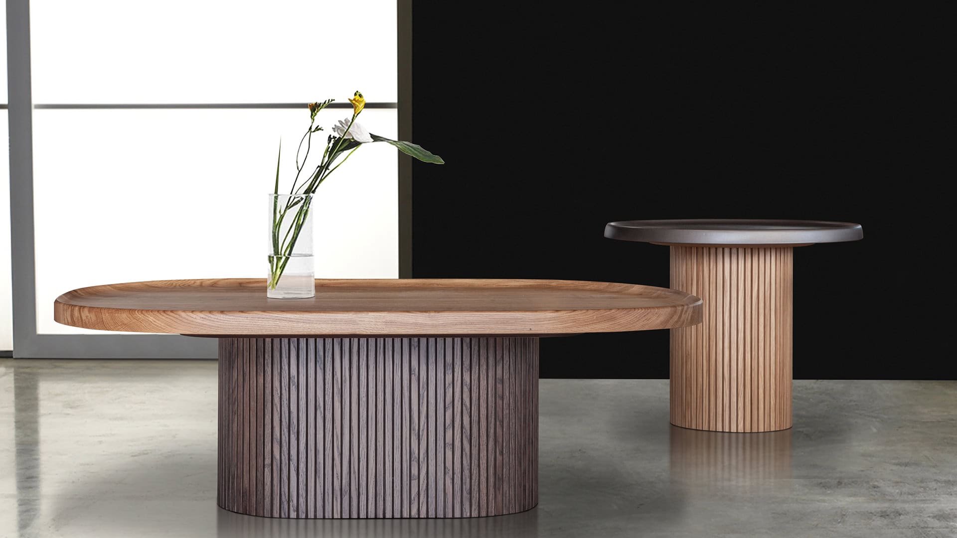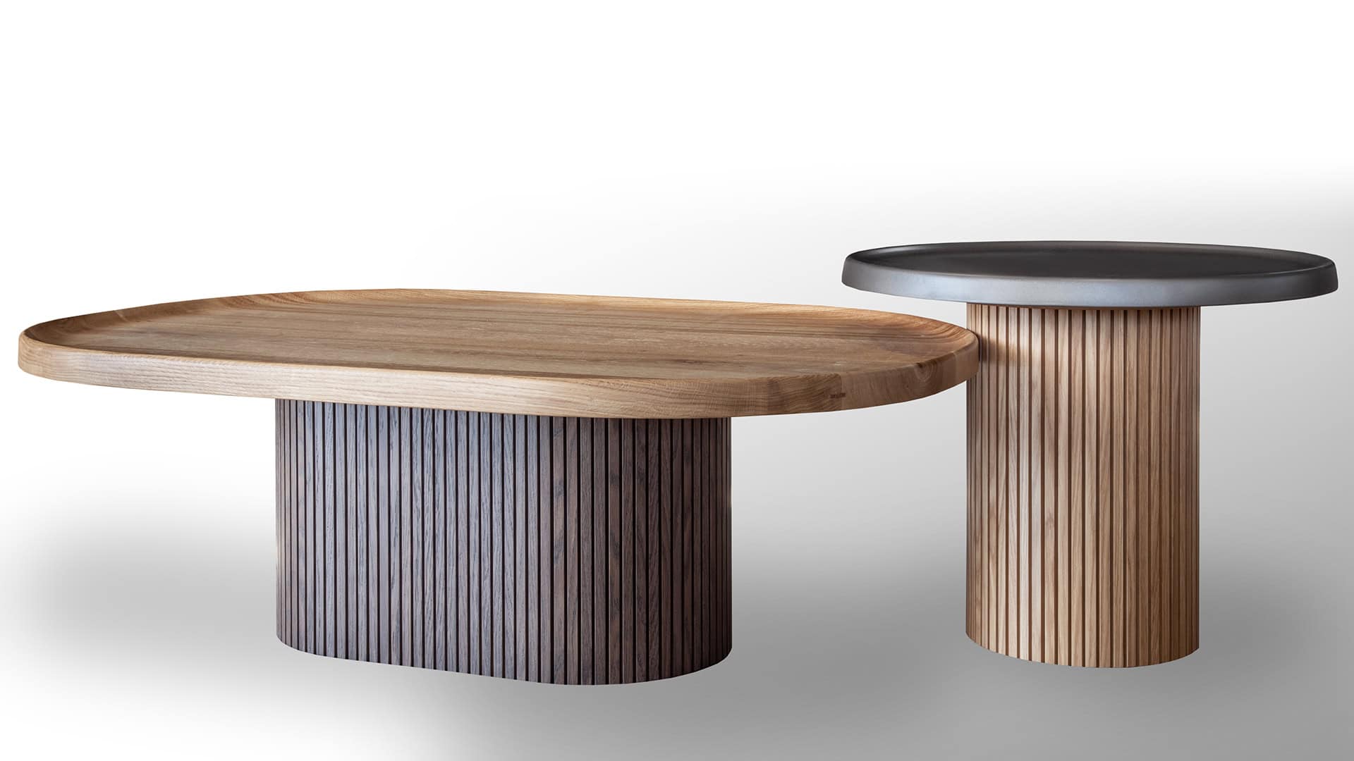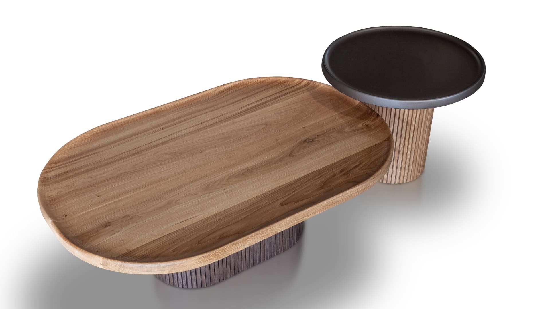 Σετ τραπεζάκια σαλονιού Ring. Ελληνικής Κατασκευής. α) Eπιφάνεια απο ξύλο μασίφ δρυς και βάση με πηχακια σε διάσταση 120cm x 80cm β) Επιφάνεια απο ξύλο μασίφ σε λάκα και βάση με πηχακια σε διάσταση Φ60cm Επιλογή σε χρώματα αρεσκείας σας.