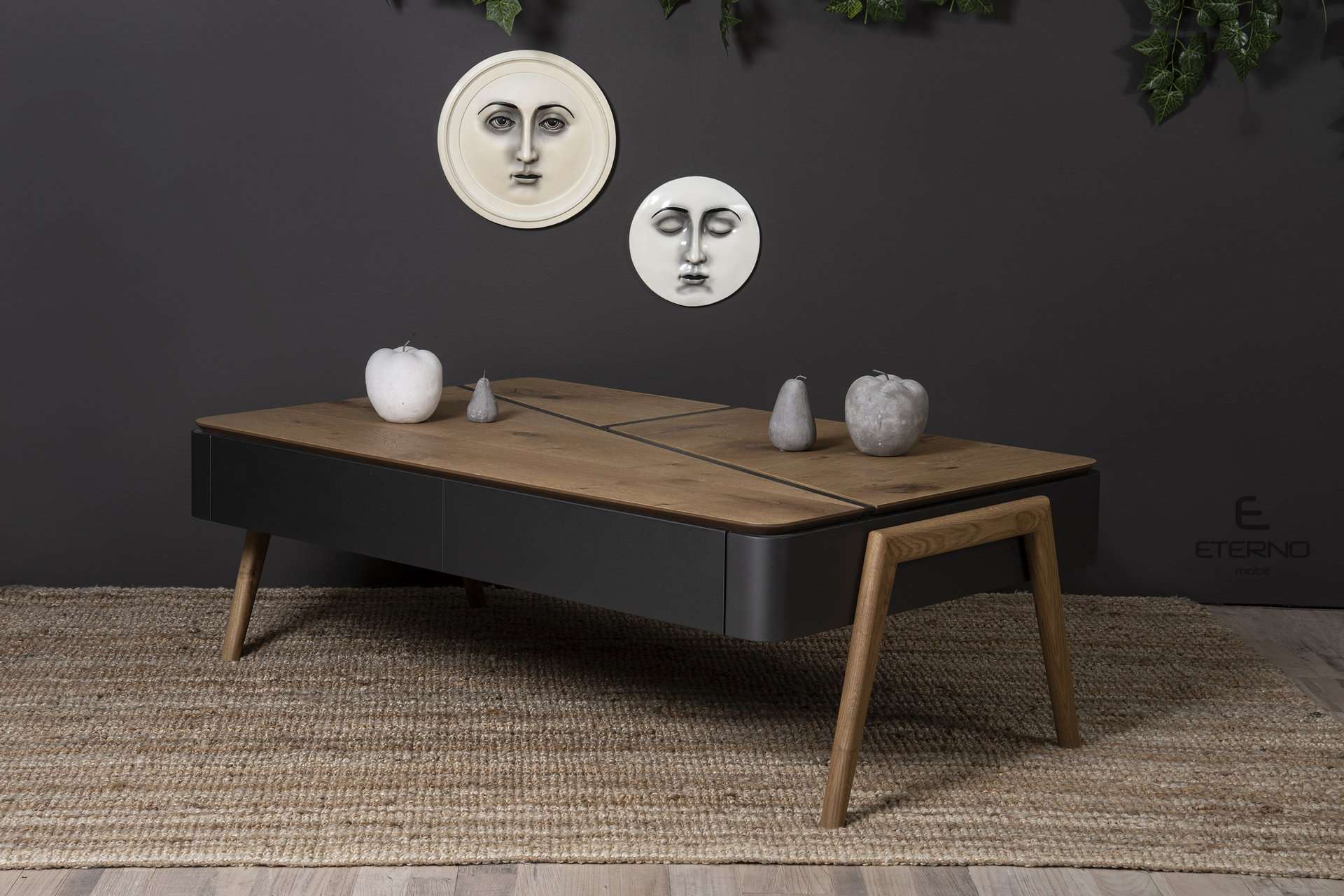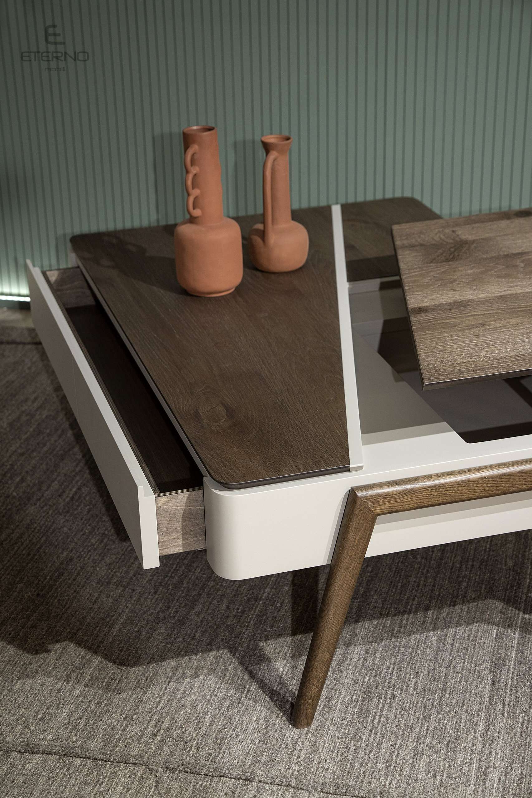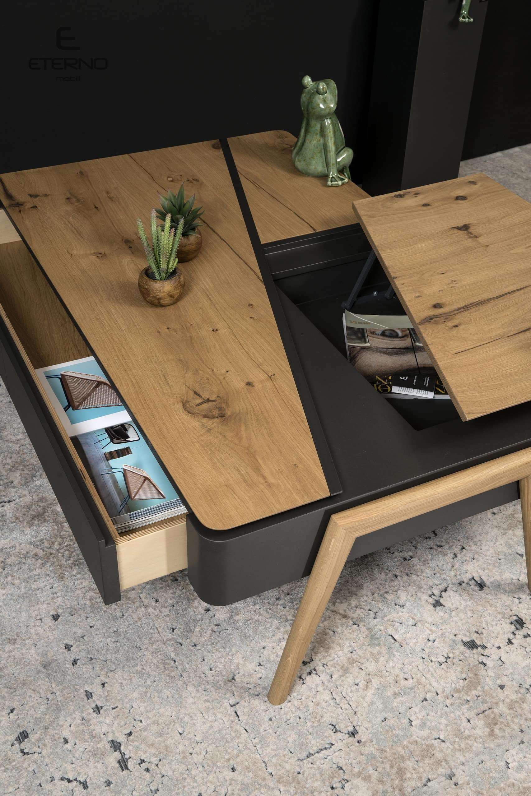 Τραπεζάκι Sense rustic. Ελληνικής κατασκευής. Κατασκευασμένο από ξύλο δρυς ρουστίκ και σε συνδυασμό με λάκα γκοφρέ το τραπεζάκι sense προσαρμόζεται στις ανάγκες και το γούστο σας. Διαθέτει επιπλέον 1 συρτάρι και ένα μηχανισμό σερβιτόρο Υλικά κατασκευής: Ξύλο δρυς ρουστίκ σε συνδυασμό με λάκα γκοφρέ. Διάσταση: 130cm x 80cm x 42cm Δυνατότητα αλλαγών.