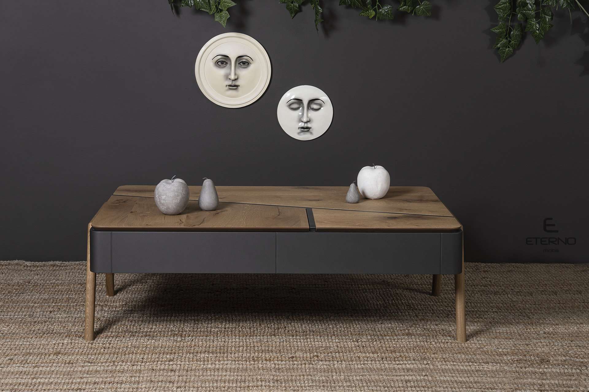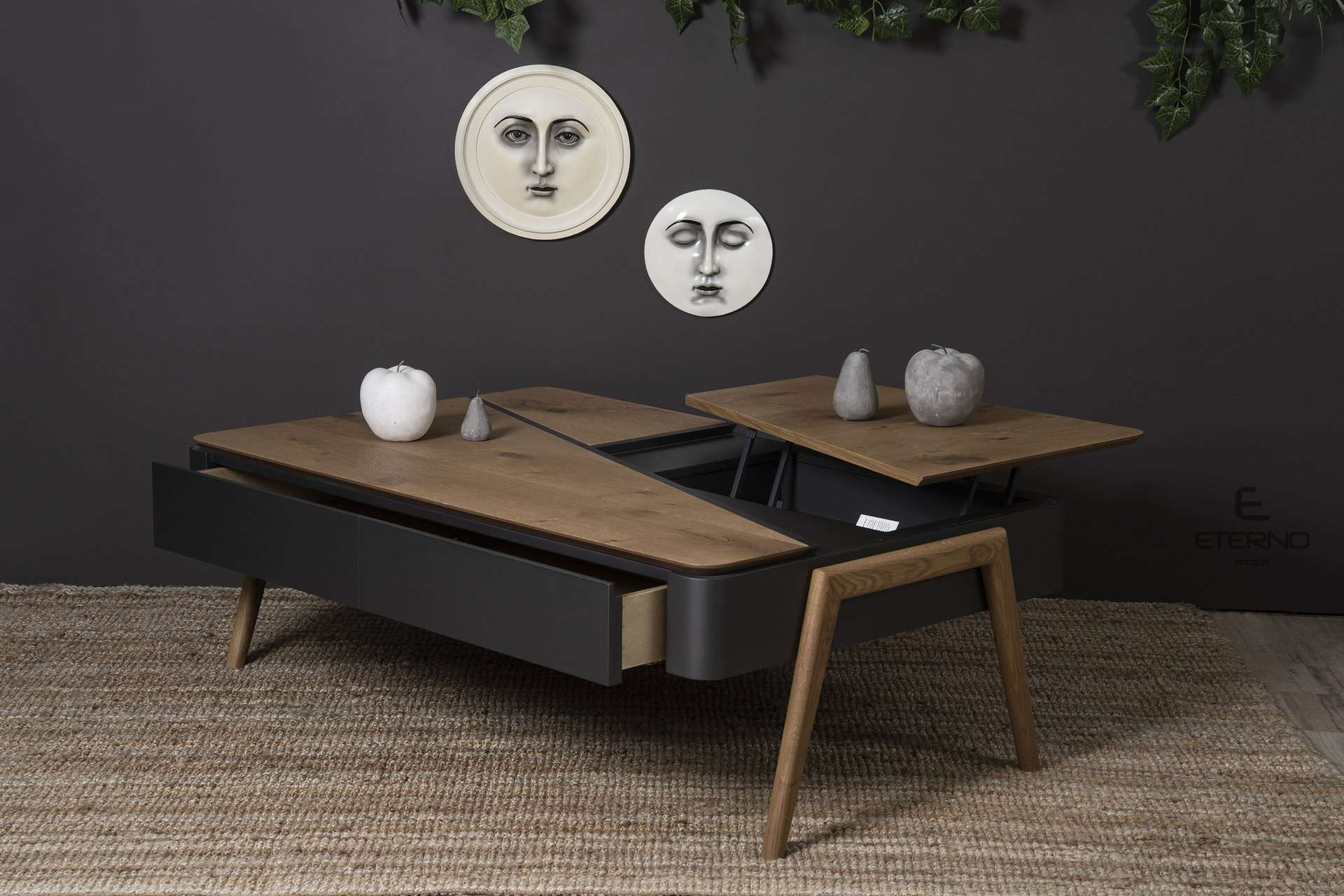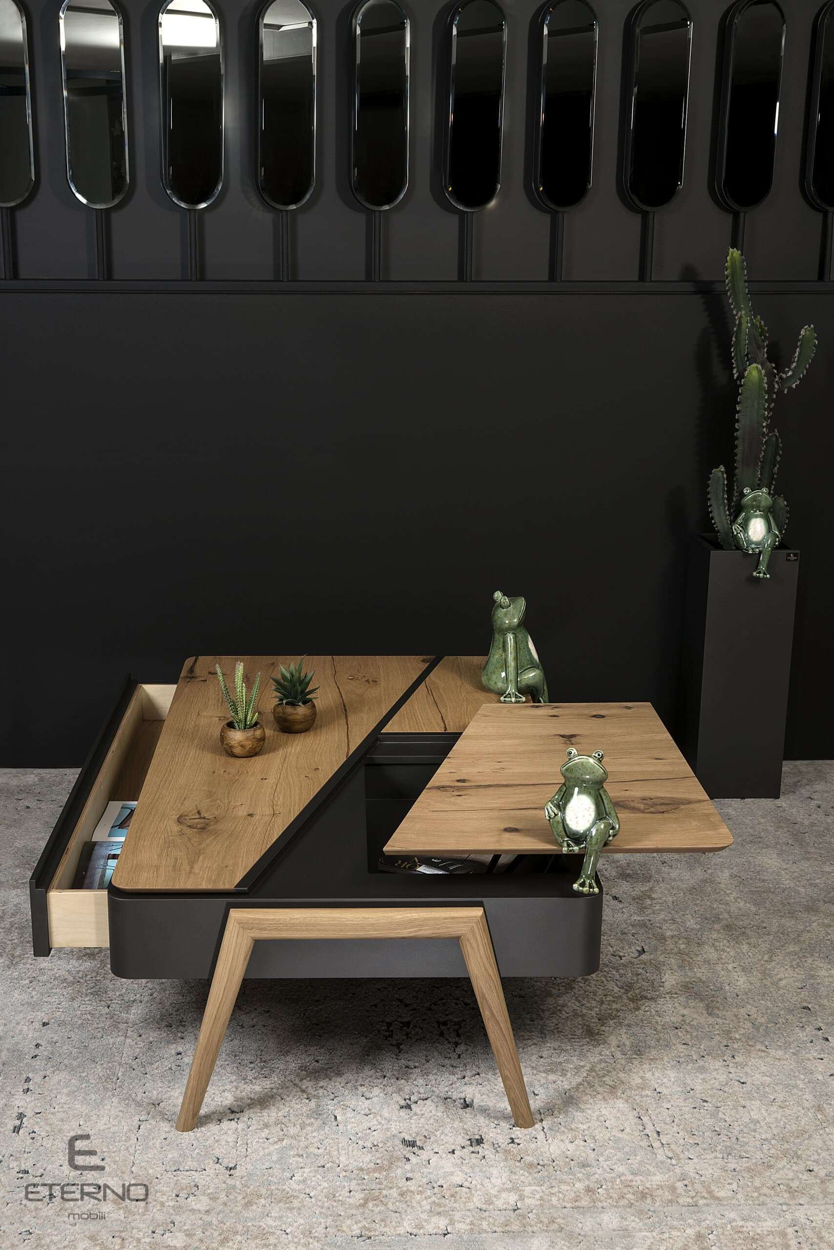 Τραπεζάκι Sense rustic. Ελληνικής κατασκευής. Κατασκευασμένο από ξύλο δρυς ρουστίκ και σε συνδυασμό με λάκα γκοφρέ το τραπεζάκι sense προσαρμόζεται στις ανάγκες και το γούστο σας. Διαθέτει επιπλέον 1 συρτάρι και ένα μηχανισμό σερβιτόρο Υλικά κατασκευής: Ξύλο δρυς ρουστίκ σε συνδυασμό με λάκα γκοφρέ. Διάσταση: 130cm x 80cm x 42cm Δυνατότητα αλλαγών.