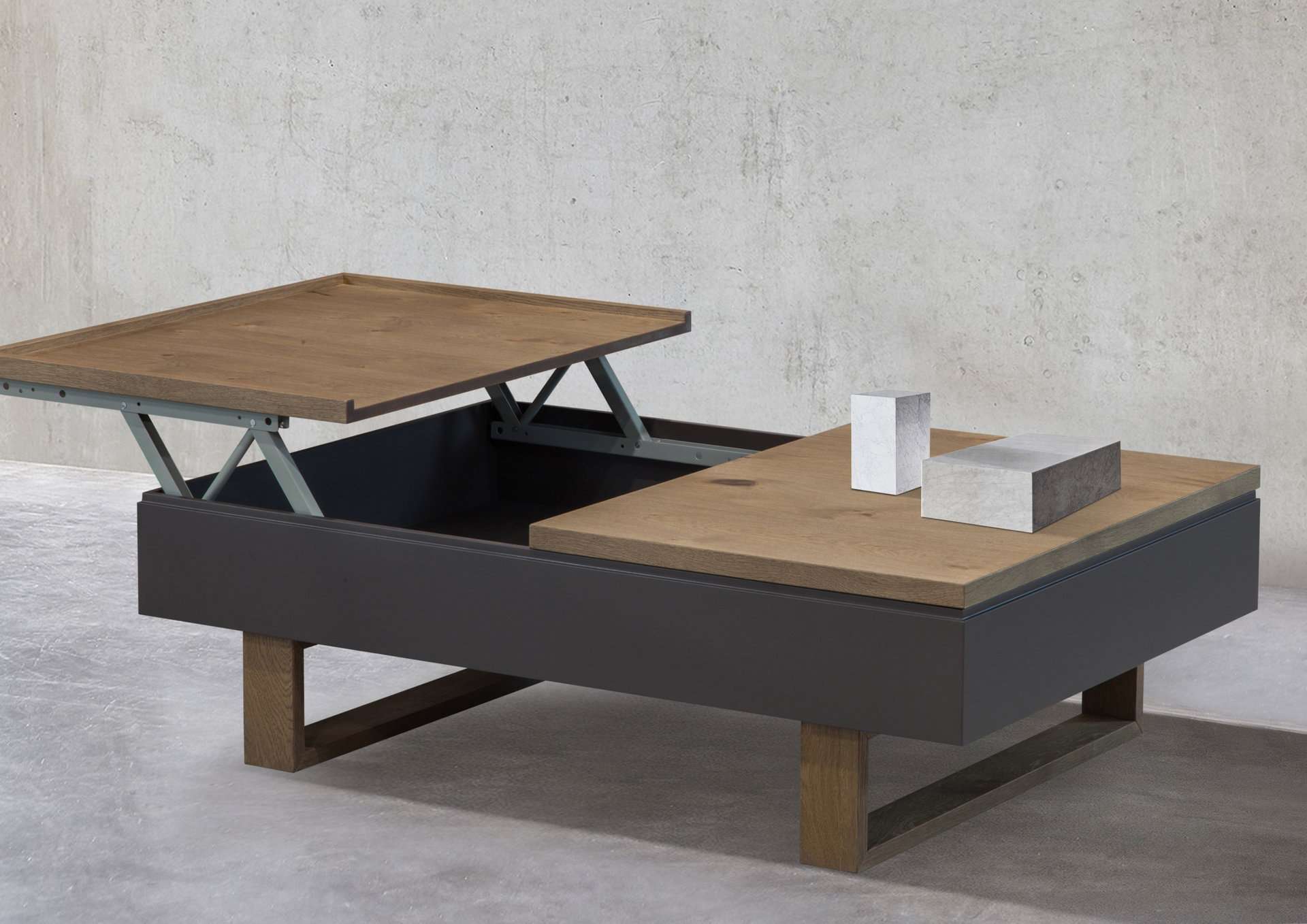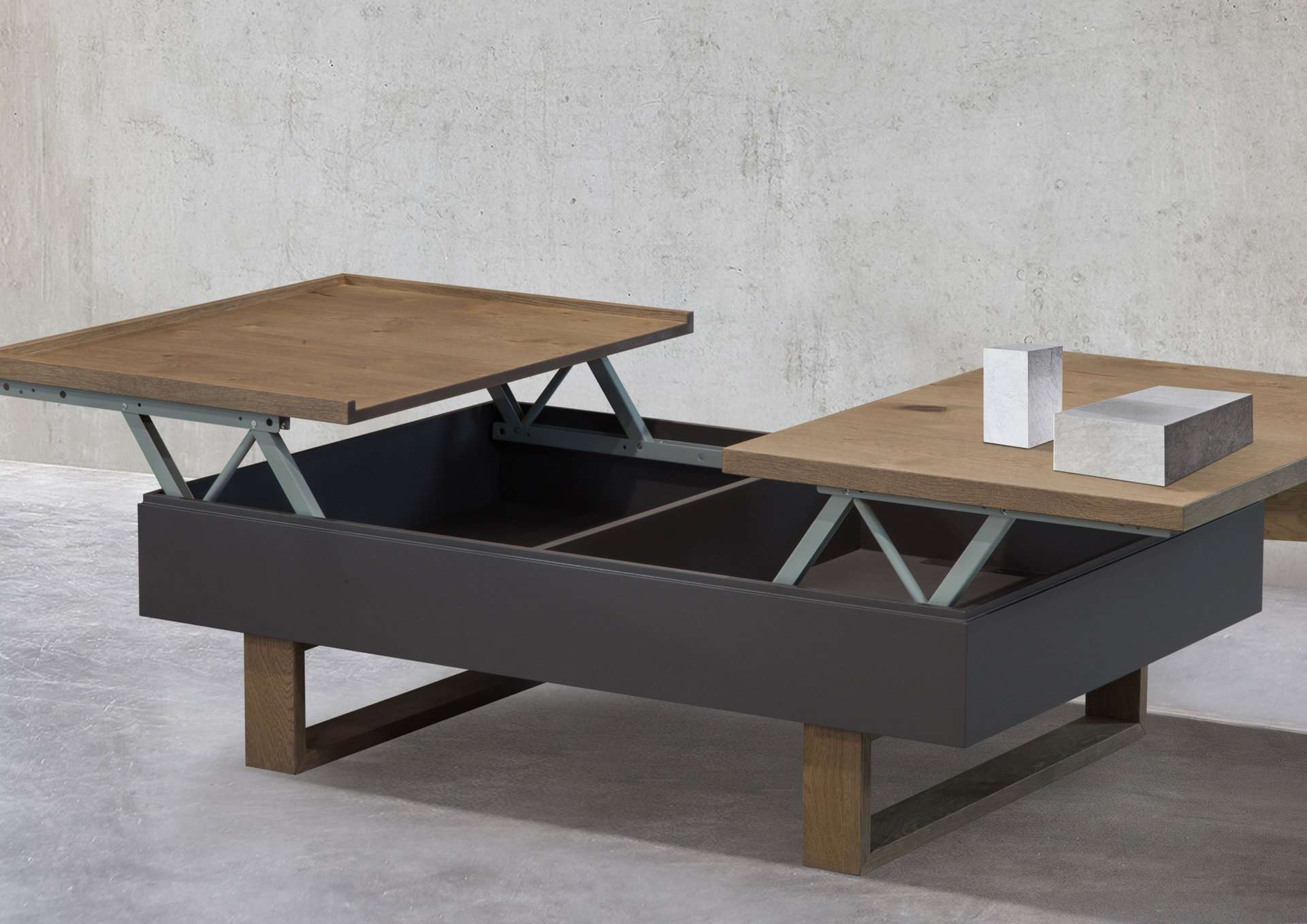 Το τραπεζάκι σαλονιού Space προσφέρει μεγάλους αποθηκευτικούς χώρους με τους δυο μεγάλους μηχανισμούς τύπου σερβιτόρου. Επιλέξτε τους συνδυασμούς χρωμάτων που ταιριάζουν στο σαλόνι σας και απολαύστε σχεδιασμό και λειτουργικότητα.