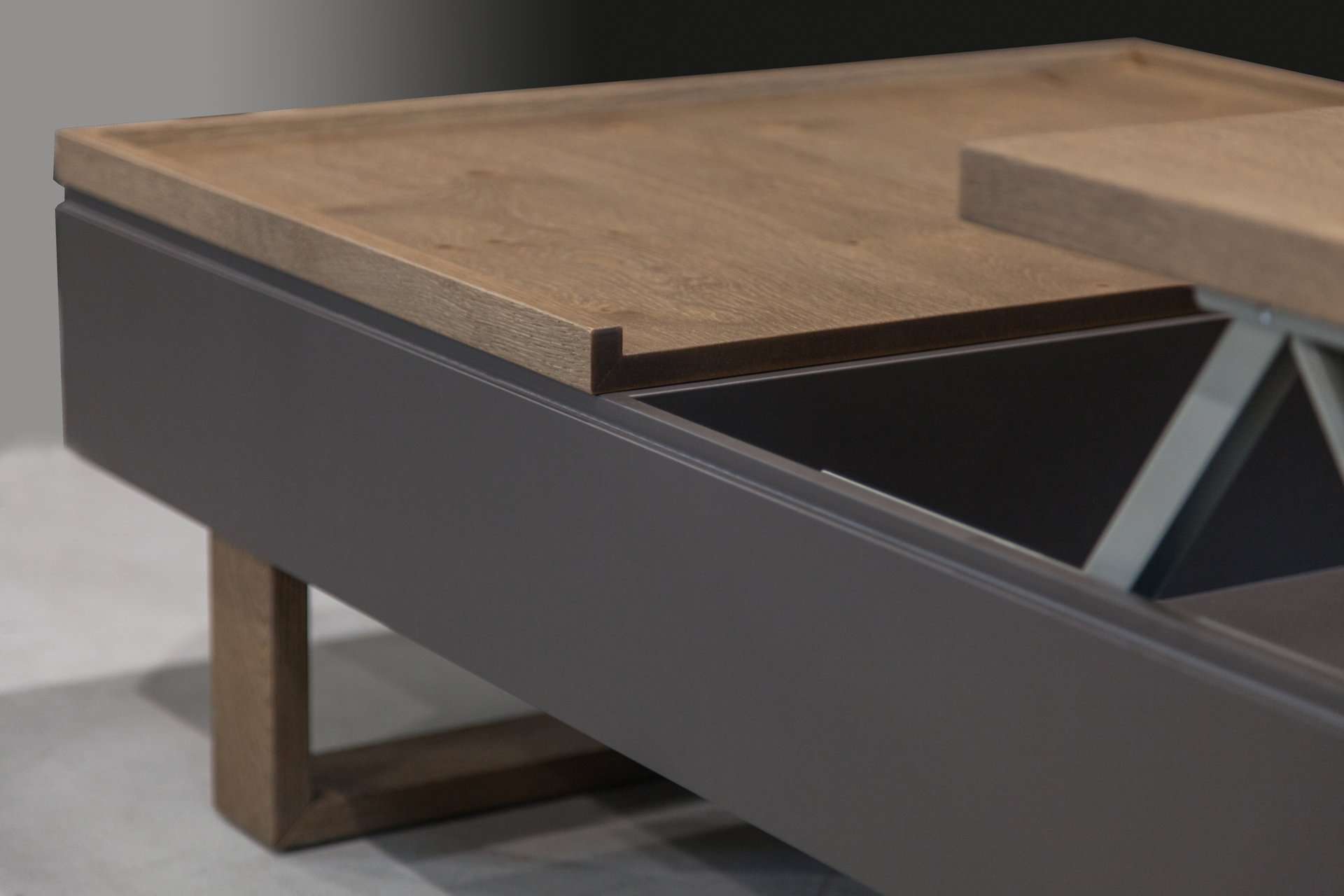 Τραπέζι σαλονιού Space. Ελληνικής Κατασκευής. Ξύλο δρύς ρουστίκ με λεπτομέρειες λάκας Αποθηκευτικός χώρος. Με δύο μηχανισμούς σερβιτόρου. Διαστάσεις: 120cm x 80cm Δυνατότητα αλλαγών.