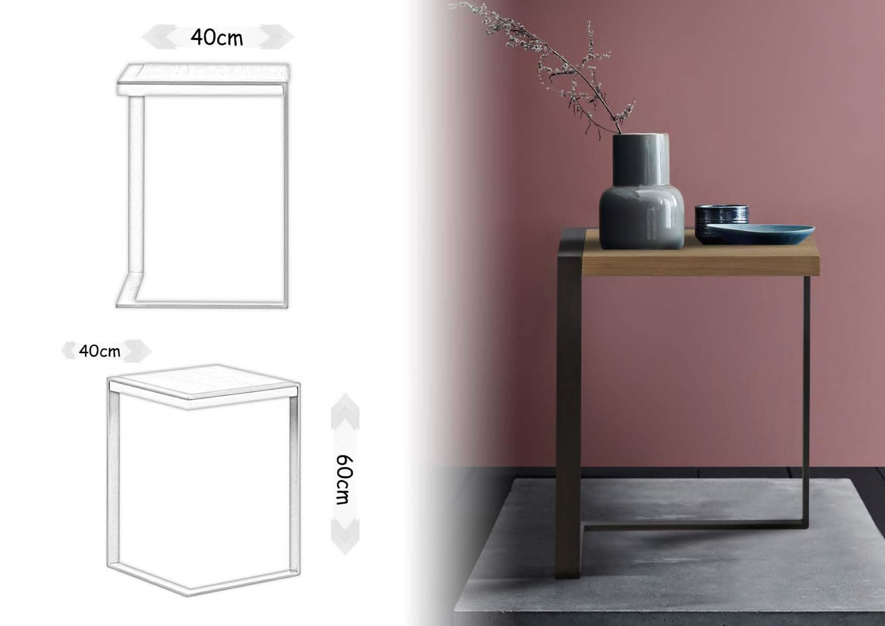 Βοηθητικό τραπέζι σαλονιού ozzy. Ελληνικής κατασκευής Ξύλο: Δρυς + μέταλλο Διάσταση: 40cm x 40cm x 60cm Δυνατότητα αλλαγών.